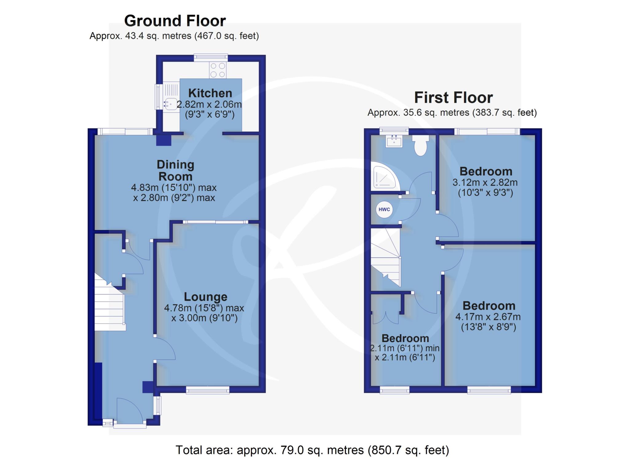 To the first floor are each of the 3 bedrooms (two being double in size) together with the shower room with white sanitary wear.