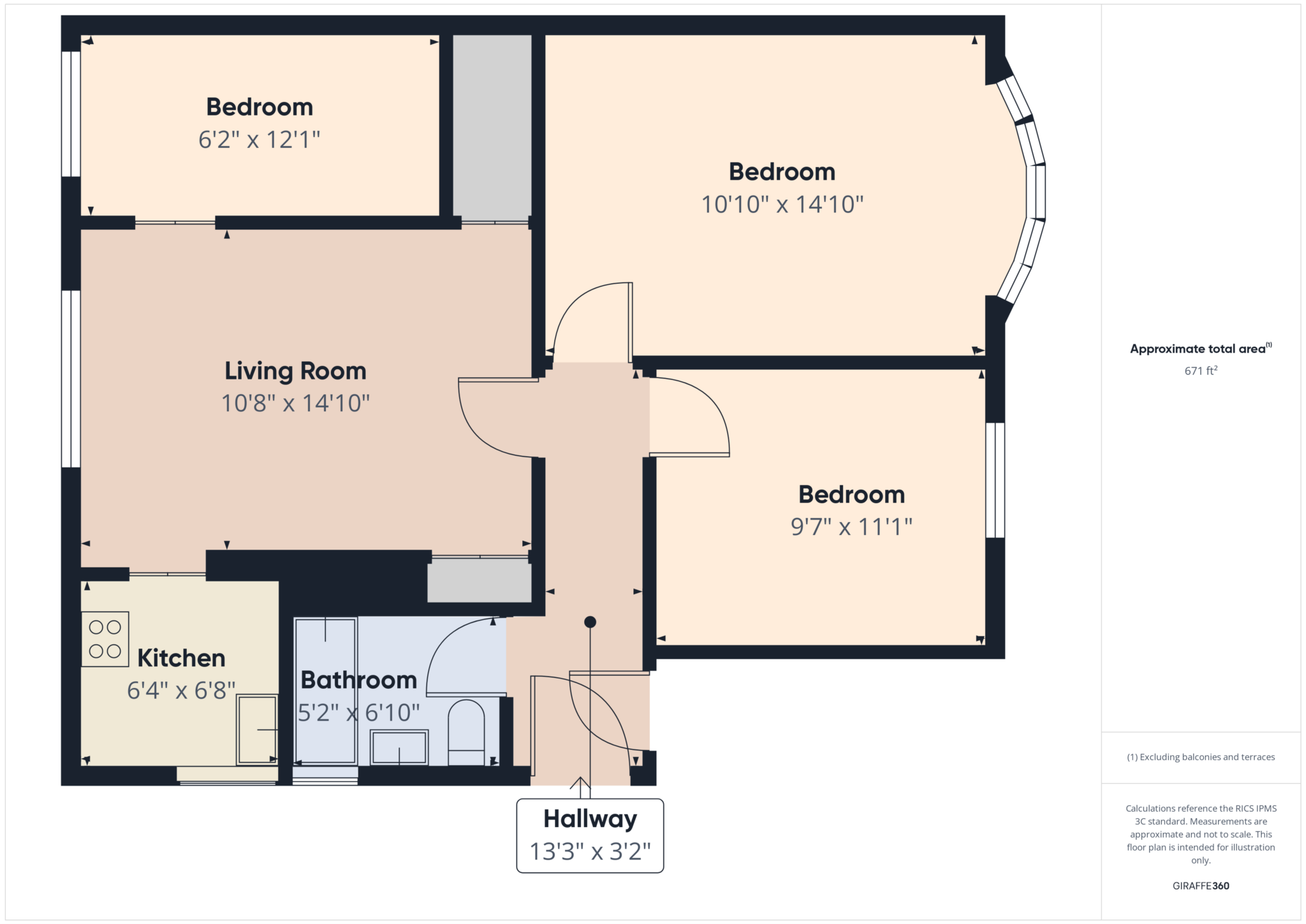 Approximate Total Area: 671 sq. ft. (62.3 sq. m)