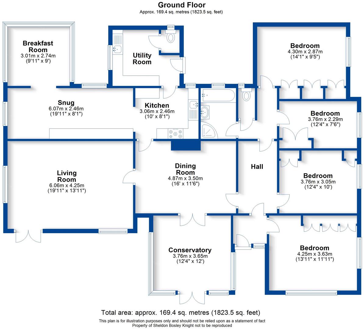 The accommodation comprises in brief: Dining Room, Living Room, Snug, Kitchen, Breakfast Room, Utility Room, Conservatory, Family Bathroom, Four Bedrooms all with fitted wardrobes.
