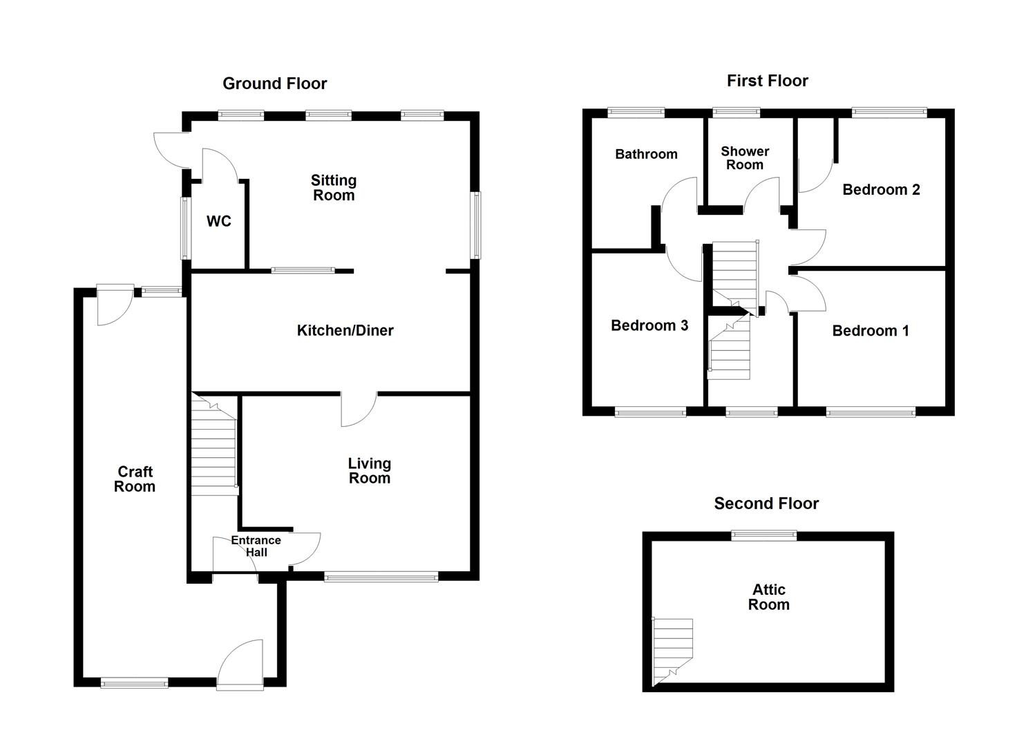 The property briefly comprises of the entrance porch leading into the craft room, entrance hall, living room, kitchen/diner, sitting room and downstairs w.c. The first floor landing leads to three double bedrooms, shower room and bathroom. A further set of stairs lead to the attic room. Outside to the front is a double driveway providing off road parking for two vehicles. To the rear is a low maintenance garden, enclosed by timber fencing. There is a single detached garage with power and light.