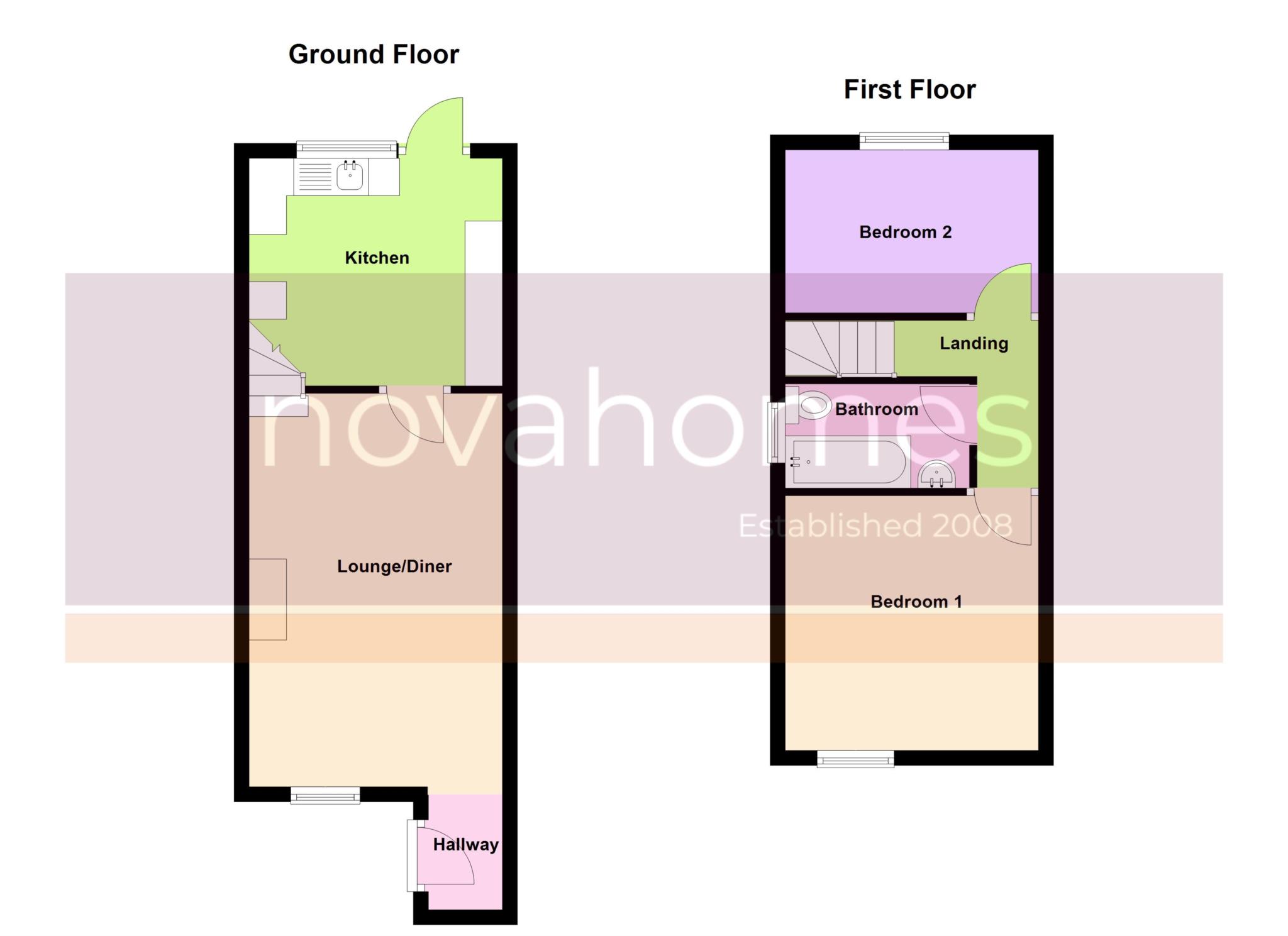 This well presented two bedroom semi-detached home is situated within a cul-de-sac location and would make on ideal first time or buy to let investment. The accommodation to the ground floor comprises, hallway, good size lounge/diner and modern kitchen. Upstairs are two double bedrooms and a bathroom. Further benefits include gas central heating, double glazing, enclosed gardens with parking provided by way of an allocated space. Novahomes highly recommend an early viewing to avoid disappointment.