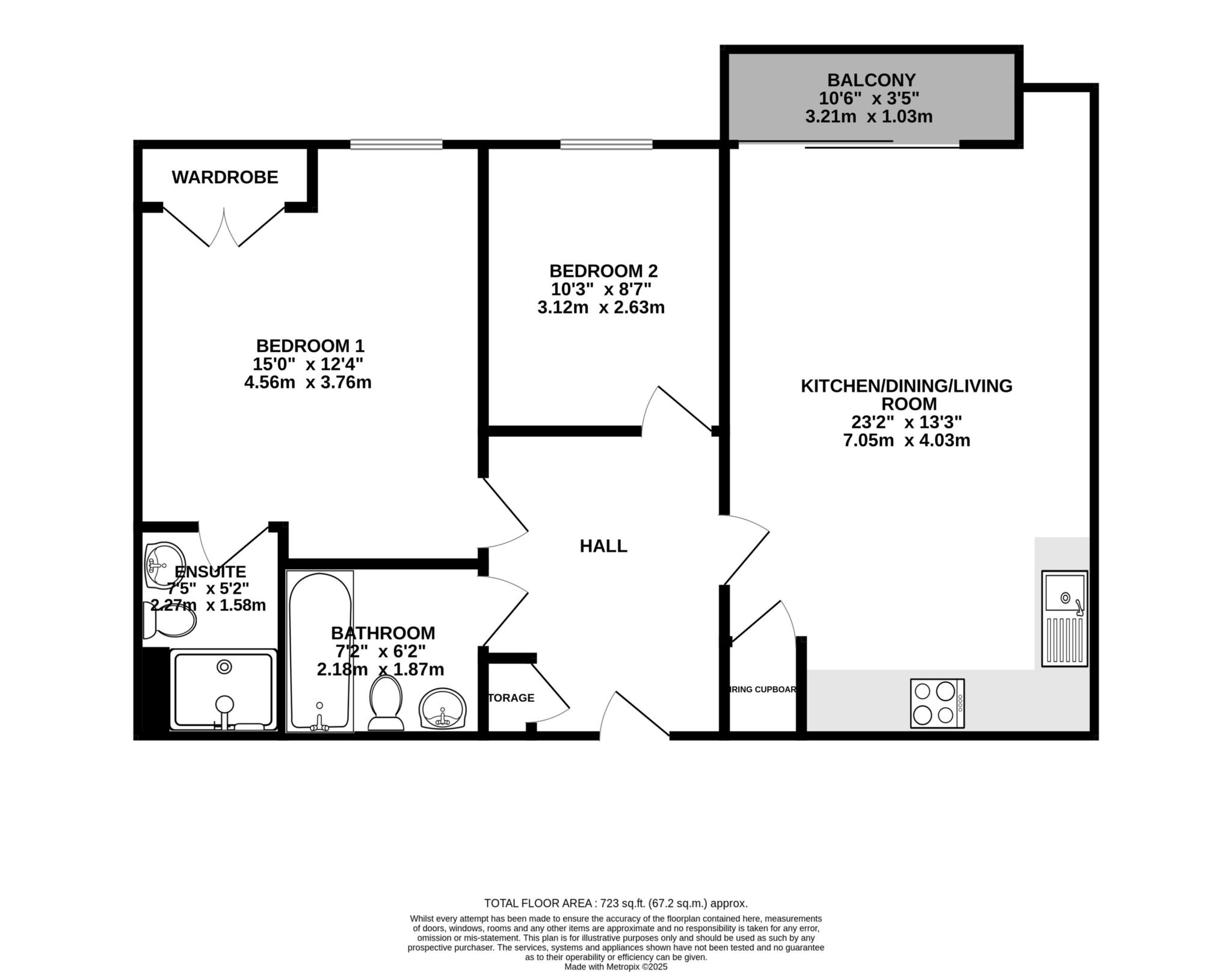 The main bedroom has built in wardrobe and ensuite shower room. The second bedroom is a large double, and there is a main bathroom with bath only - no shower.
