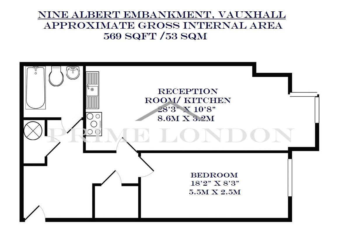 Ideally situated within a modern apartment block on Albert Embankment, this 569 sq ft(53 sqm) one bedroom fully furnished apartment is available to rent through Prime London.