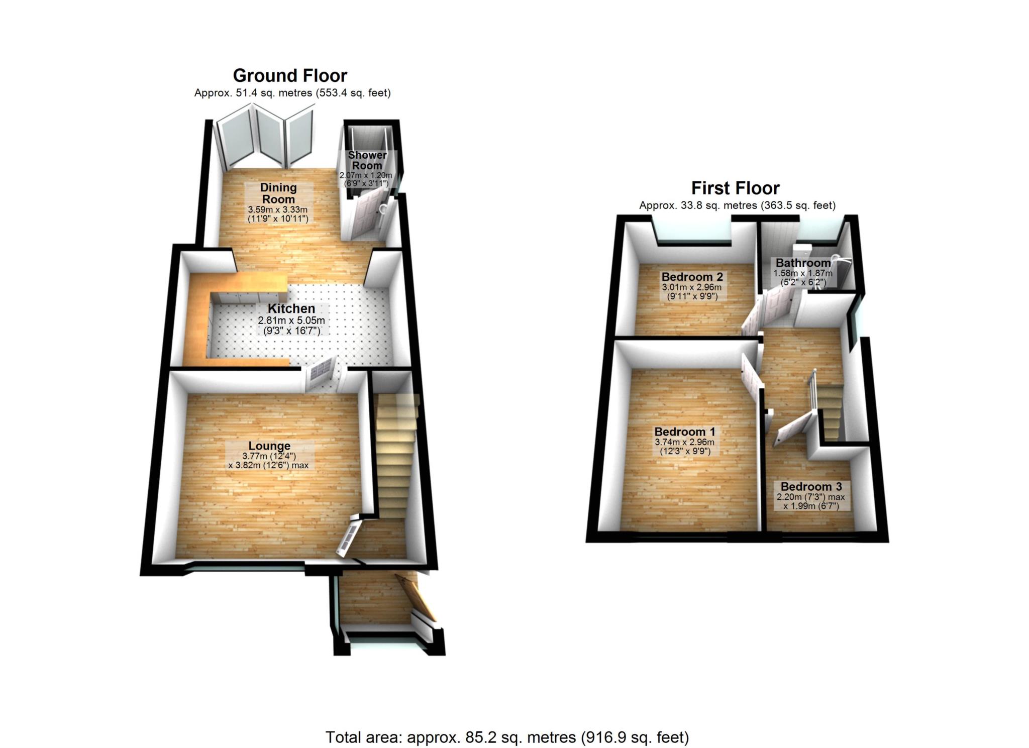 Shower Room - modern three piece shower room comprising of shower with acrylic splash back, hand wash basin set onto modern vanity unit and WC, heated towel rail, double glazed window to side and extractor.