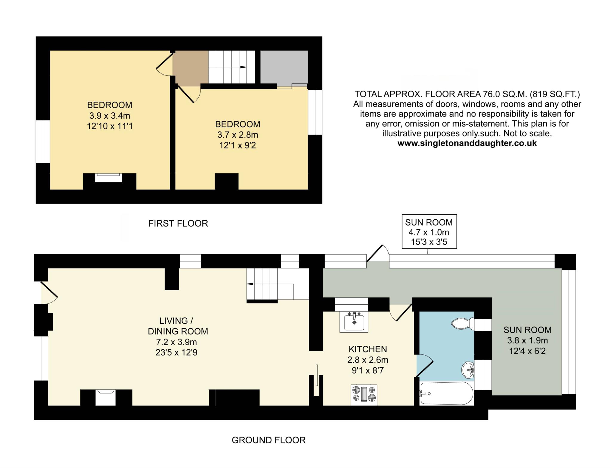 Summary of accommodation: Living/dining room, kitchen, bathroom, sun room, 2 bedrooms