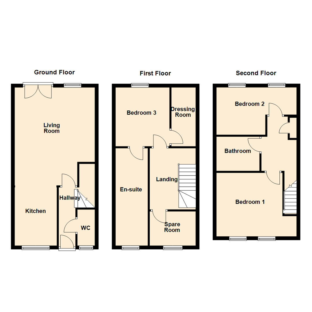 Internally the property briefly comprises to the ground floor: - entrance hallway with WC, and a fantastic open plan living, kitchen dining room with fitted units, integrated appliances, and French doors access to the rear. to the first floor there are two bedrooms, one with an en suite and a generous dressing room. On the second floor there are two double bedrooms and a family bathroom WC with overhead shower. Further benefits include gas central heating, double glazing, and ample storage.