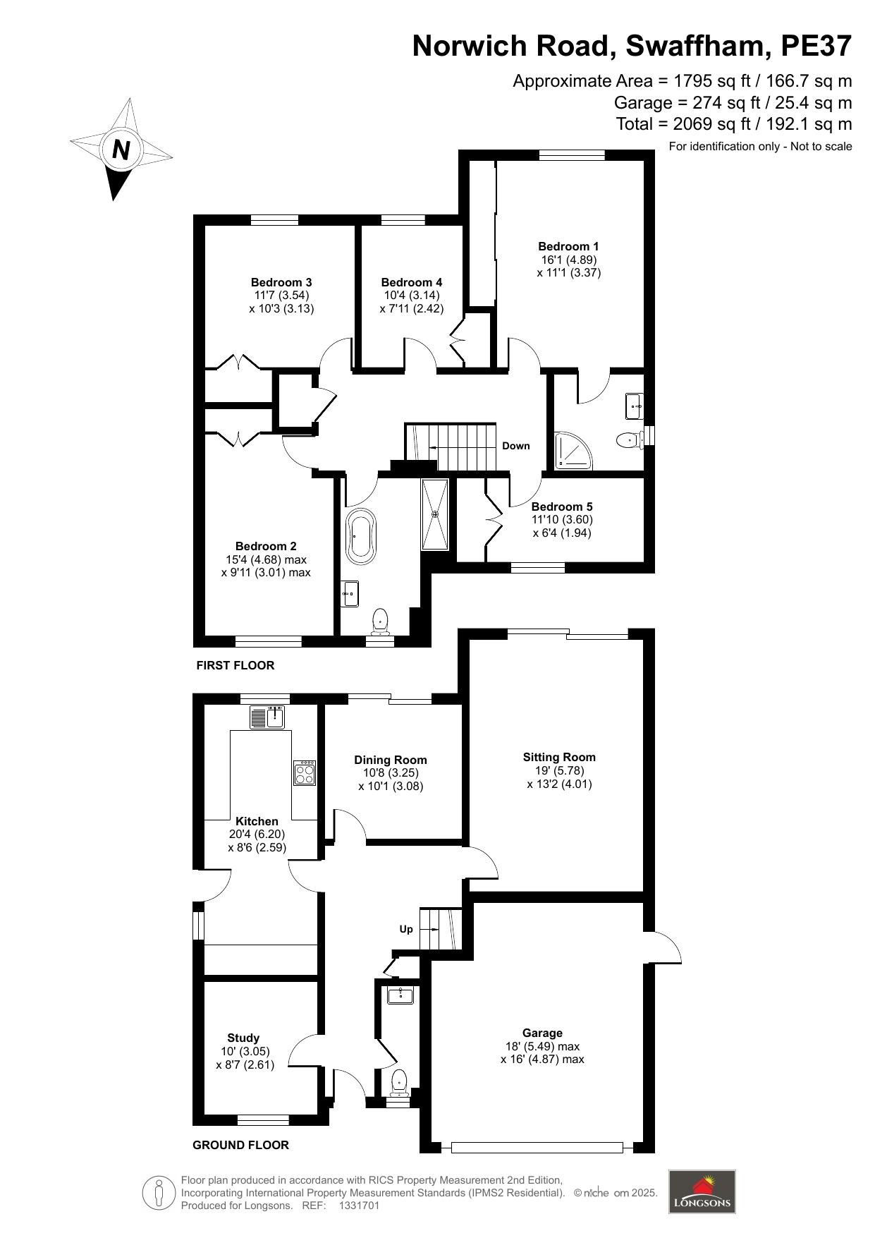 Briefly, the property offers entrance hall, sitting room, dining room, kitchen, study, cloakroom with WC, five bedrooms, en suite shower room to bedroom one, bathroom, double garage, parking, gardens, gas central heating and UPVC double glazing.