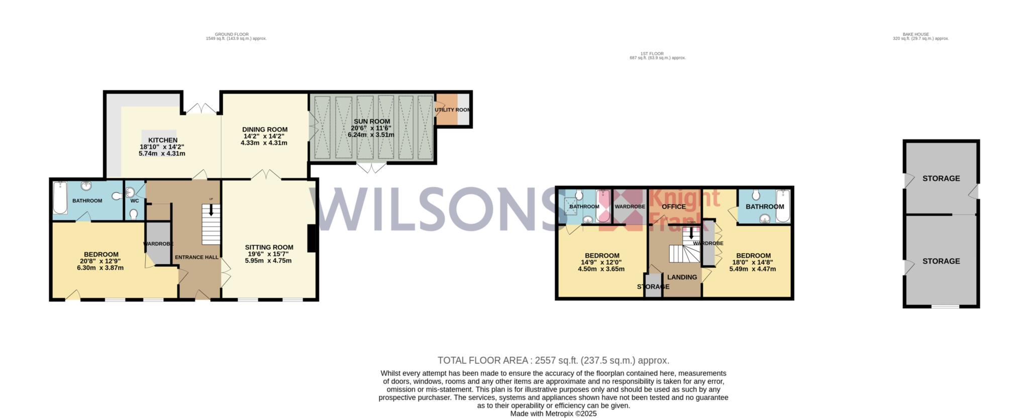 The first floor provides two additional spacious double bedrooms, inclusive of original wooden beams, each with en suite bathrooms and fitted wardrobes. There is also a study/dressing room on this level.