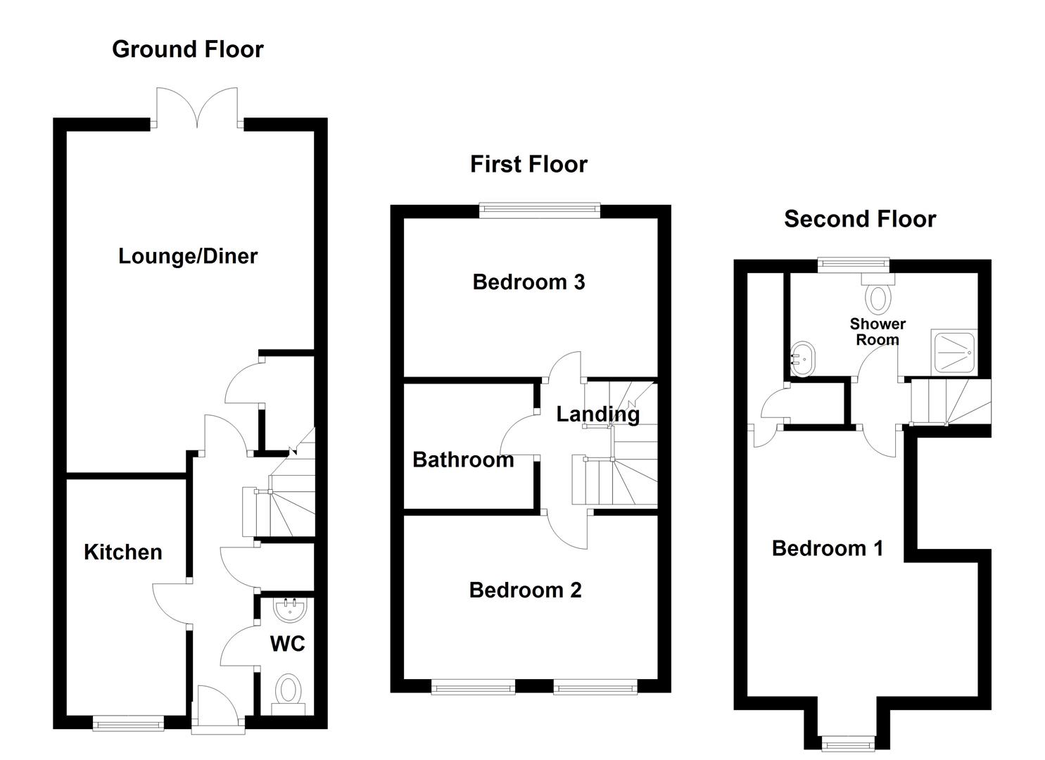 The property briefly comprises of entrance hall, downstairs w.c., kitchen and lounge/diner. The first floor landing leads to two double bedrooms and bathroom/w.c. A further set of stairs leads to the second floor which leads to a further bedroom and shower room/w.c. Outside, to the front of the property is a small garden area with steps leading to the front door and tarmacadam driveway providing off road parking for two vehicles leading to the link-detached garage. To the rear is a private and enclosed garden, mainly laid to lawn with small patio area, perfect for outdoor dining and entertaining, surrounded by timber fencing.