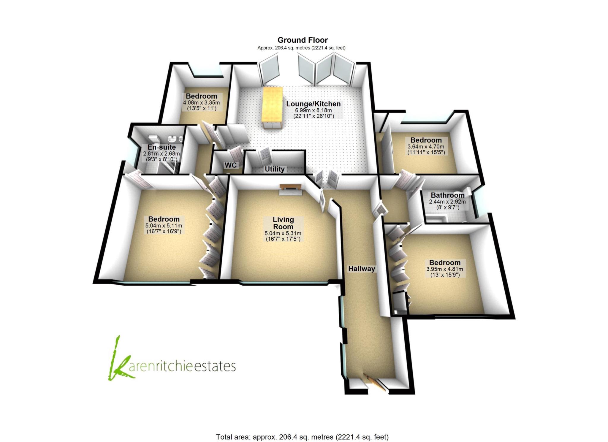 Kitchen/family area - 25'5" (7.75m) Max x 18'5" (5.61m)