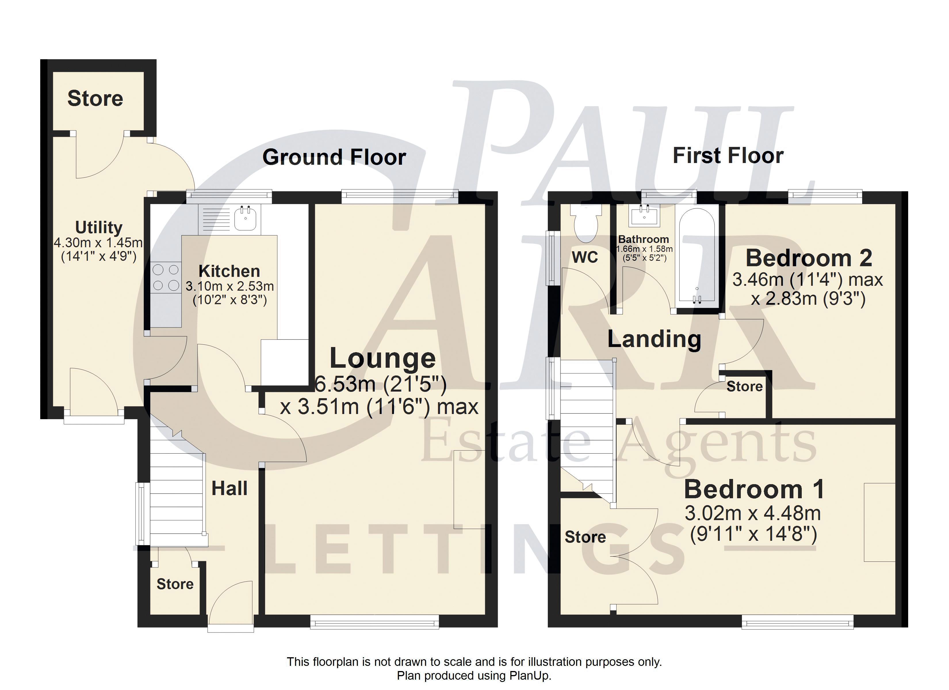 On entry to the property, an entrance hall provides access to the lounge/diner & kitchen, as well as stairs to the first floor and a storage cupboard housing meters. The lounge/dining area is a generously proportioned living area, with windows to both the front and rear aspects creating a bright and welcoming atmosphere. The kitchen features ample wall & base units, a gas hob, electric oven, and the added benefit of an under-counter fridge & dishwasher (both included on a no repair/no replace basis). There is a handy utility area just of the kitchen, with plumbing for a washing machine, access to the rear garden, and a storage area for storing garden tools etc.
