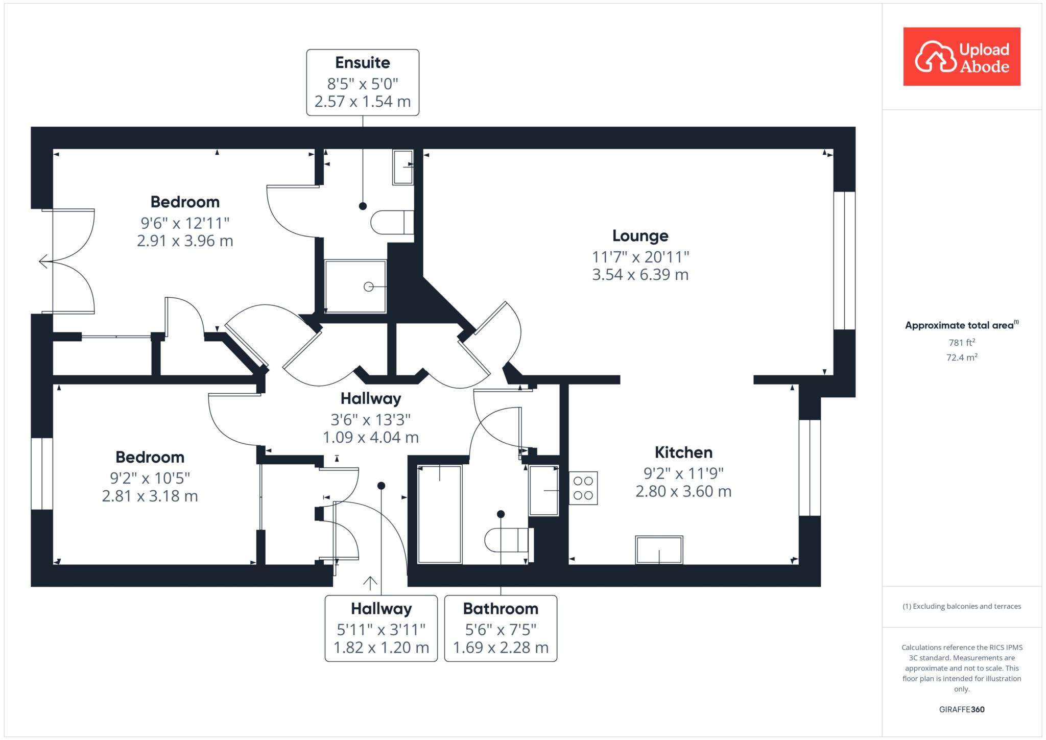 A serene master bedroom with fitted wardrobes and a luxurious ensuite, complete with a walk-in shower and striking black framed screen. The second bedroom is equally generous, offering flexibility as a guest room, office, or dressing space. A beautifully designed main bathroom complements the home perfectly, finished in a modern monochrome style.