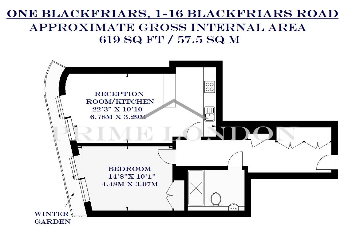 This beautiful one bedroom 619 sq ft (57.5 sqm) apartment, in the highly desirable riverside development One Blackfriars, is available for chain free through Prime London.