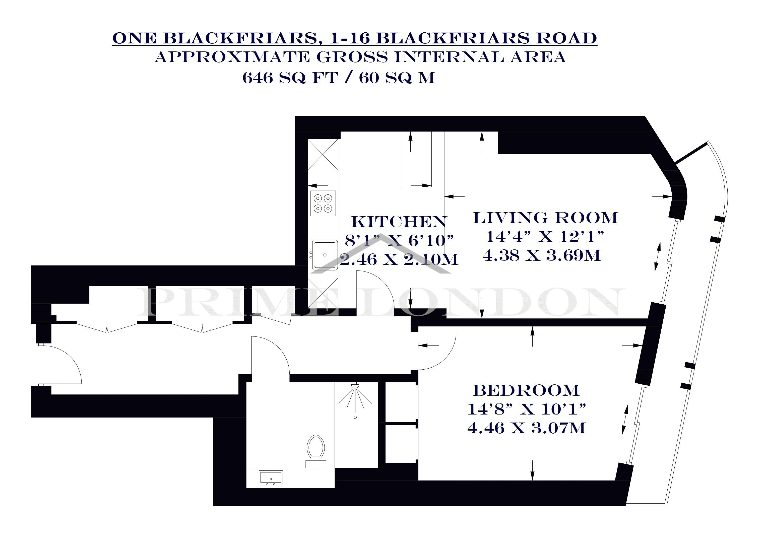 A modern and spacious one bedroom apartment in the prestigious One Blackfriars, offering exceptional facilities and 646 sq ft / 60 sq m of internal living space, available to rent through Prime London.