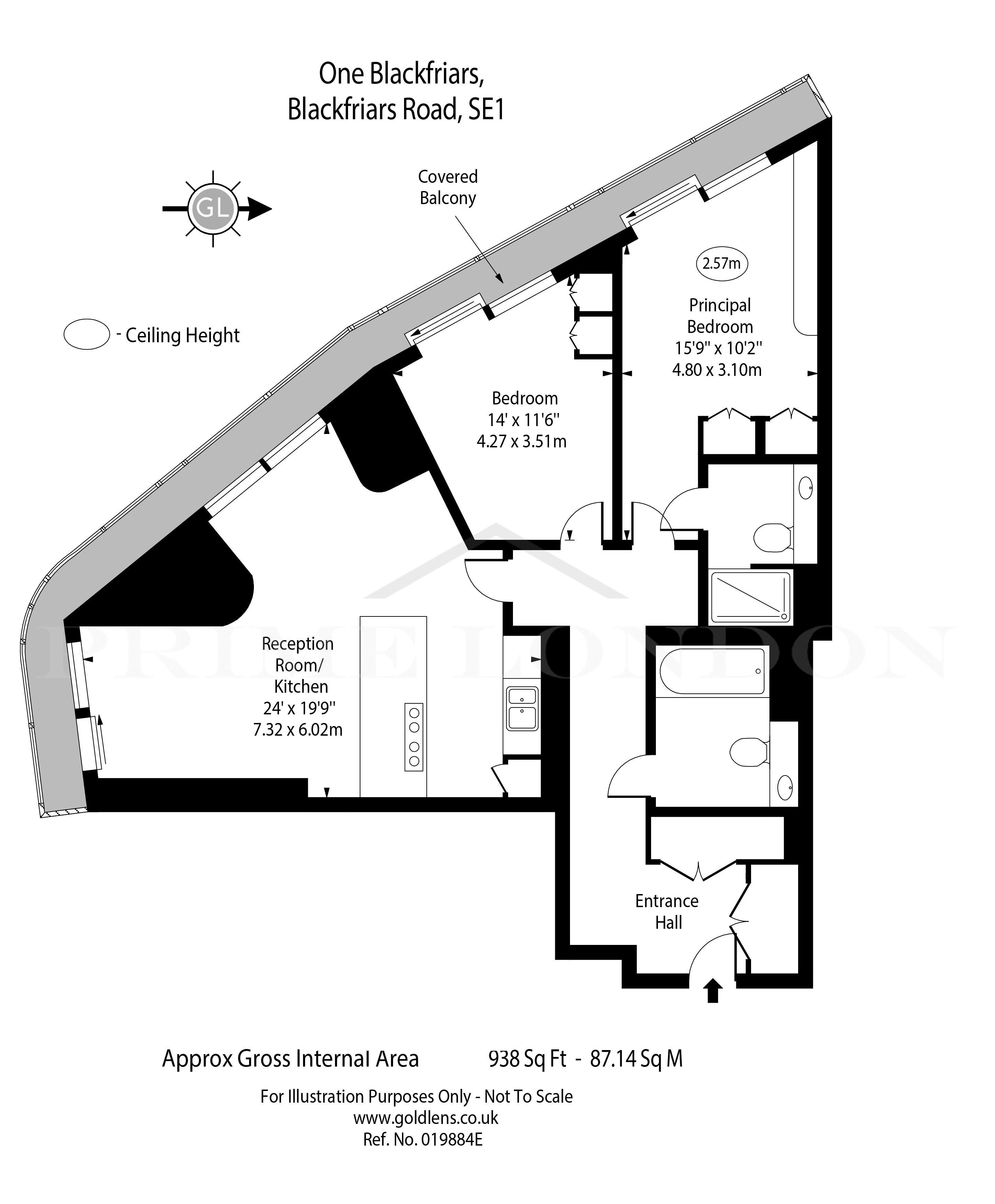 One Blackfriars is located next to Southbank in the heart of London’s cultural district and 0.3 miles from Southwark Underground Station for the Jubilee Line. Blackfriars Underground and Overground Station are also located 0.3 miles away across Blackfriars Bridge. The apartment is conveniently located for the City, Canary Wharf and the West End via the Jubilee Line. Times and distances quoted are approximate.