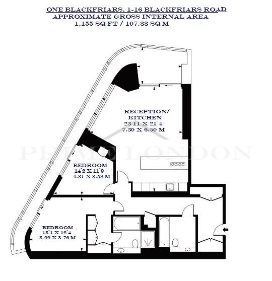 This elite two-bedroom apartment, with unparalleled views and exceptional furnishings and interior design offers 1,155 sq ft (107.33 sqm) of high quality internal space, and is available for rent through Prime London.