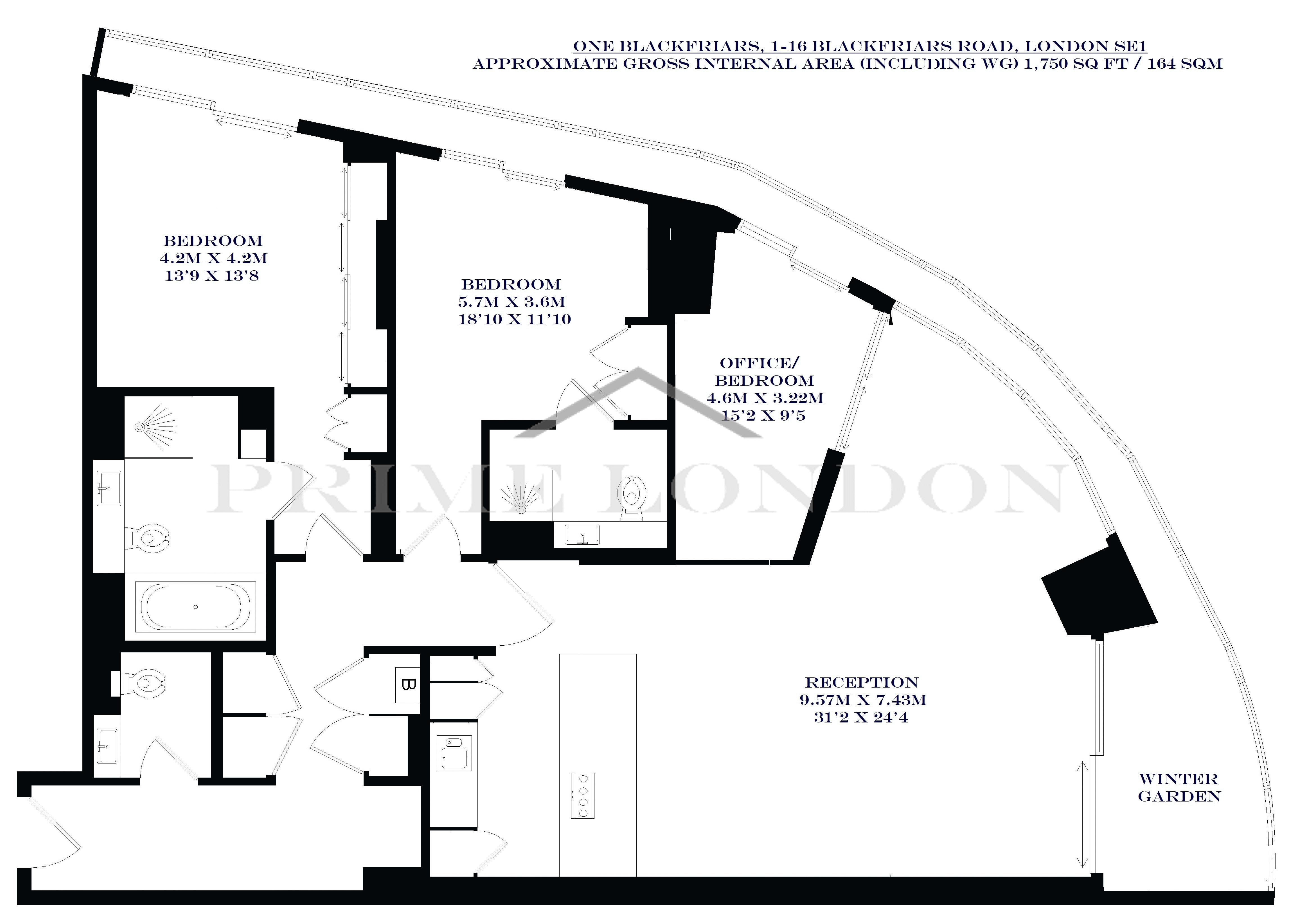One Blackfriars is located next to Southbank in the heart of London's cultural district and 0.3 miles from Southwark Underground Station for the Jubilee Line. Blackfriars Underground and Overground Station are also located 0.3 miles away across Blackfriars Bridge. The apartment is conveniently located for the City, Canary Wharf and the West End via the Jubilee Line. Times and distances quoted are approximate.