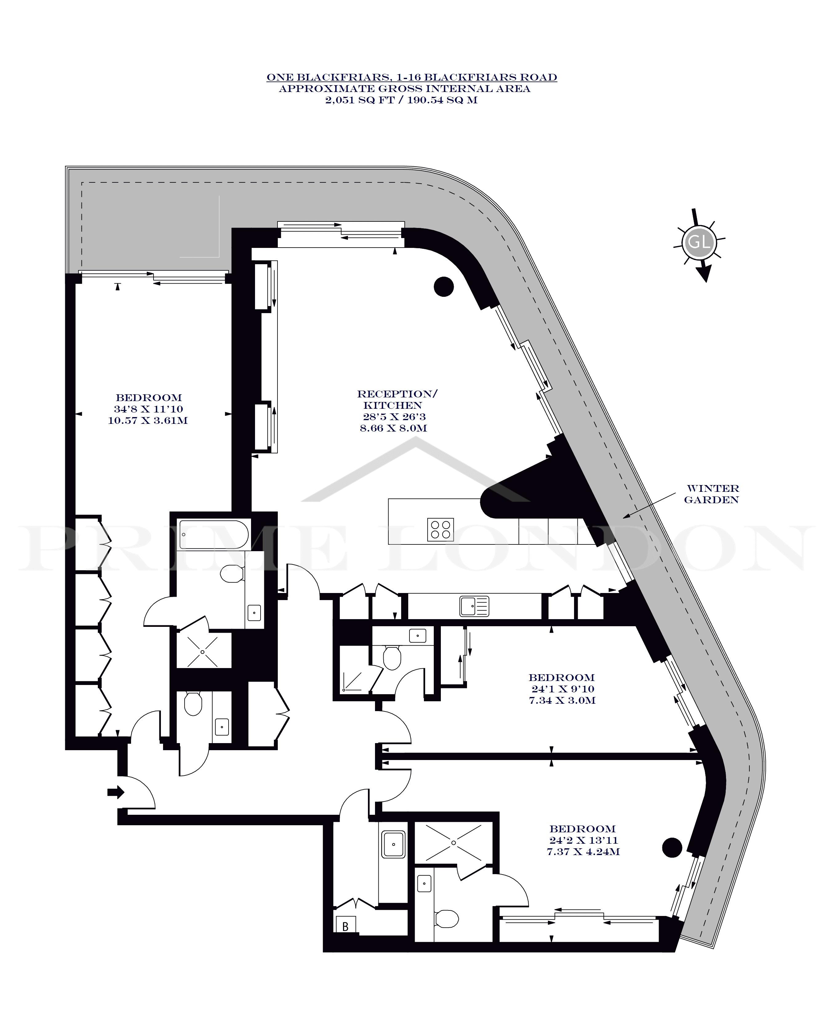 This elite three bedroom apartment - comprising of 2,051 sq ft / 190.54 sq m of internal space and positioned near the top of the stunning One Blackfriars development - comes exceptionally interior designed and fully furnished throughout, and is available to rent through Prime London.