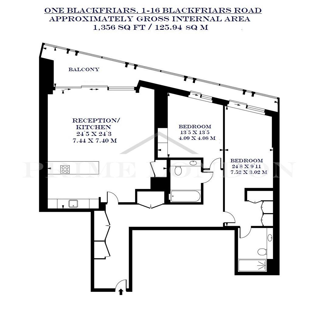 This elite two-bedroom apartment, with unparalleled river views and exceptional furnishings and interior design offers 1,356 sq ft (125.94 sqm) of high quality internal space, and is available for rent through Prime London.