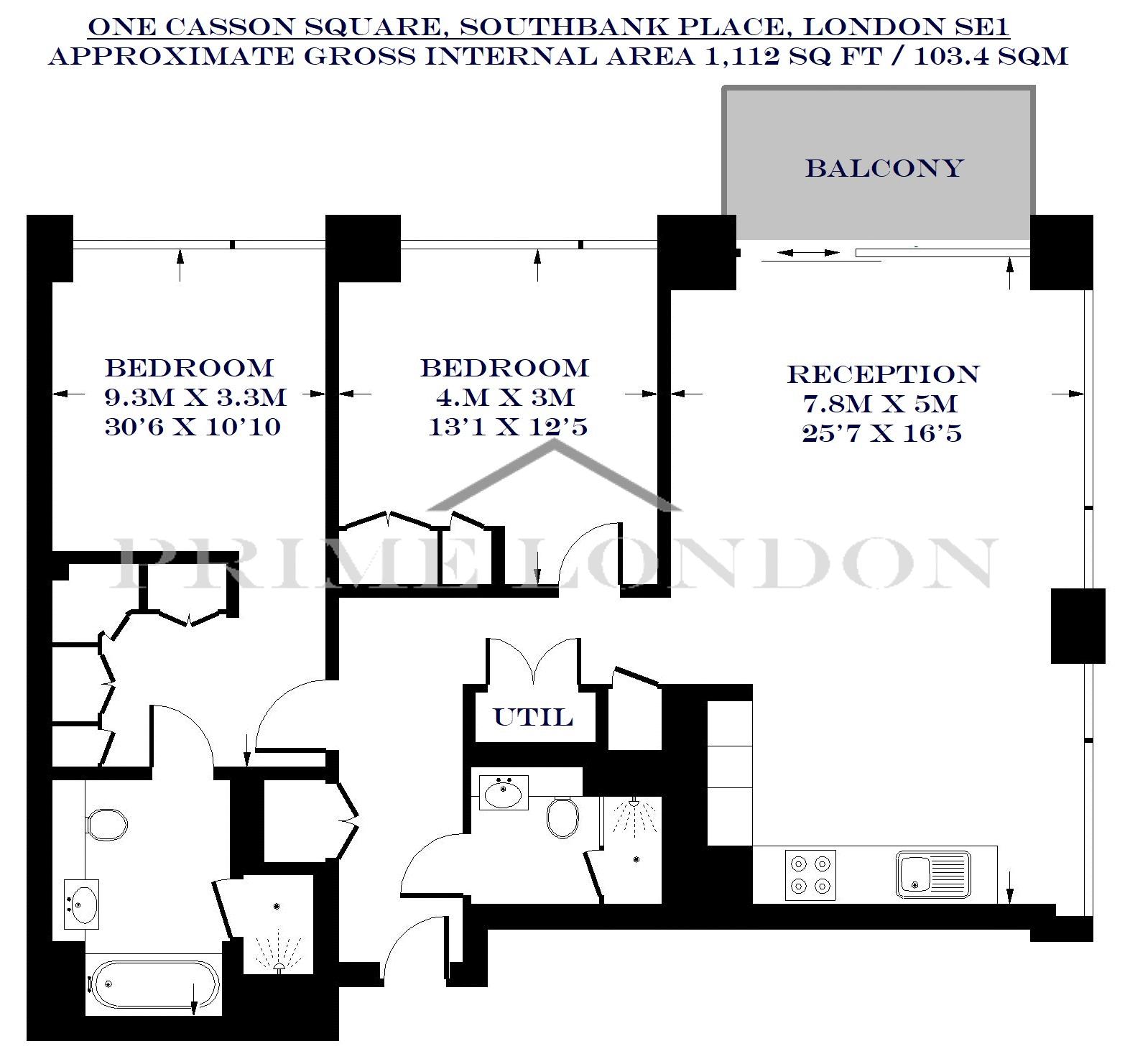 The apartment offers 1,112 (103.4 sqm) of internal space and benefits from having a spacious dual aspect lounge with a substantial balcony and excellent finishes throughout. Apartment interiors blend traditional and modern approaches with combinations of high quality natural materials creating a harmonious and durable feel.