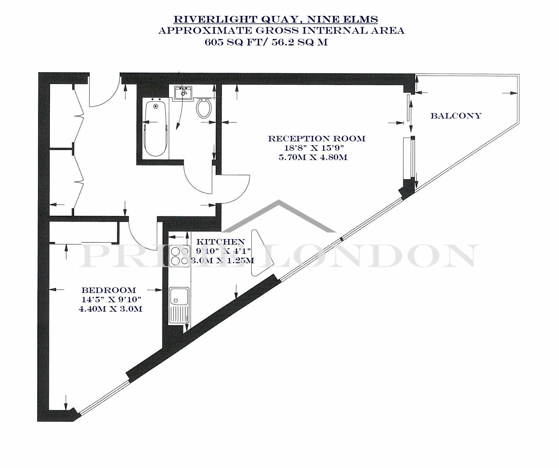 Offering exceptional value and space, this 605 sq ft / 56.2 sq m one bedroom prow style apartment is available for chain free sale through Prime London.