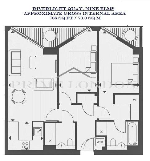 A modern and recently refurbished high floor two bedroom apartment, within the modern and highly desirable Riverlight Quay development, available for sale exclusively through Prime London. This 786 sq ft (73 sq m) apartment offers a bright and modern living space, two bedrooms and two bathrooms, two balconies, a high specification level throughout, comfort cooling and under floor heating.