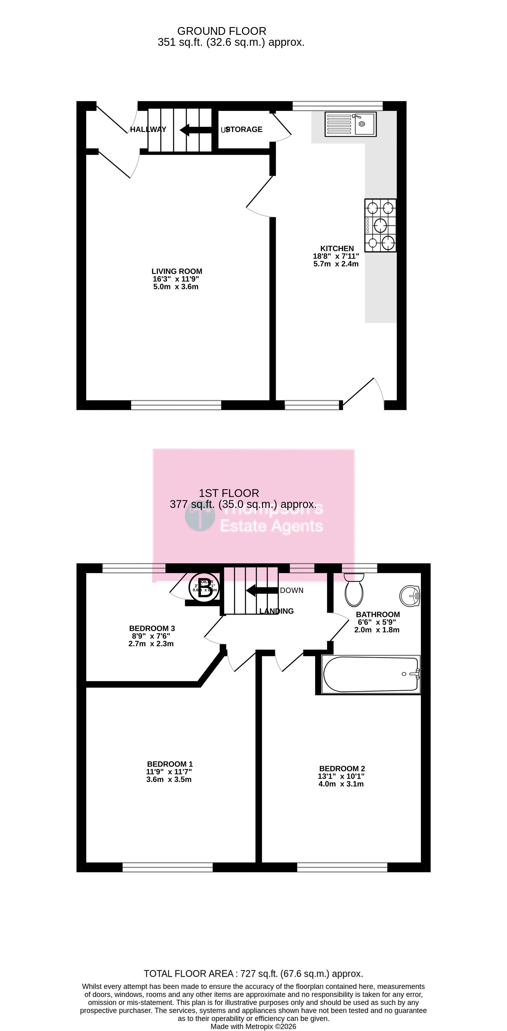 Carpeted stairs and landing, double glazed window to the side, plug points and loft hatch access. The loft is not boarded.