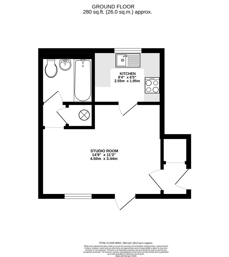 Accommodation - Providing accommodation that briefly comprises of:, entrance lobby with built in storage, the studio room overlooks and opens onto the rear garden, the kitchen is fitted with modern storage units and drawers with work surfaces over that have an inset gas hob with extractor above and electric oven below, there is space for appliances and a front aspect double glazed window, the bathroom is fitted with an enclosed bath wash basin and WC.