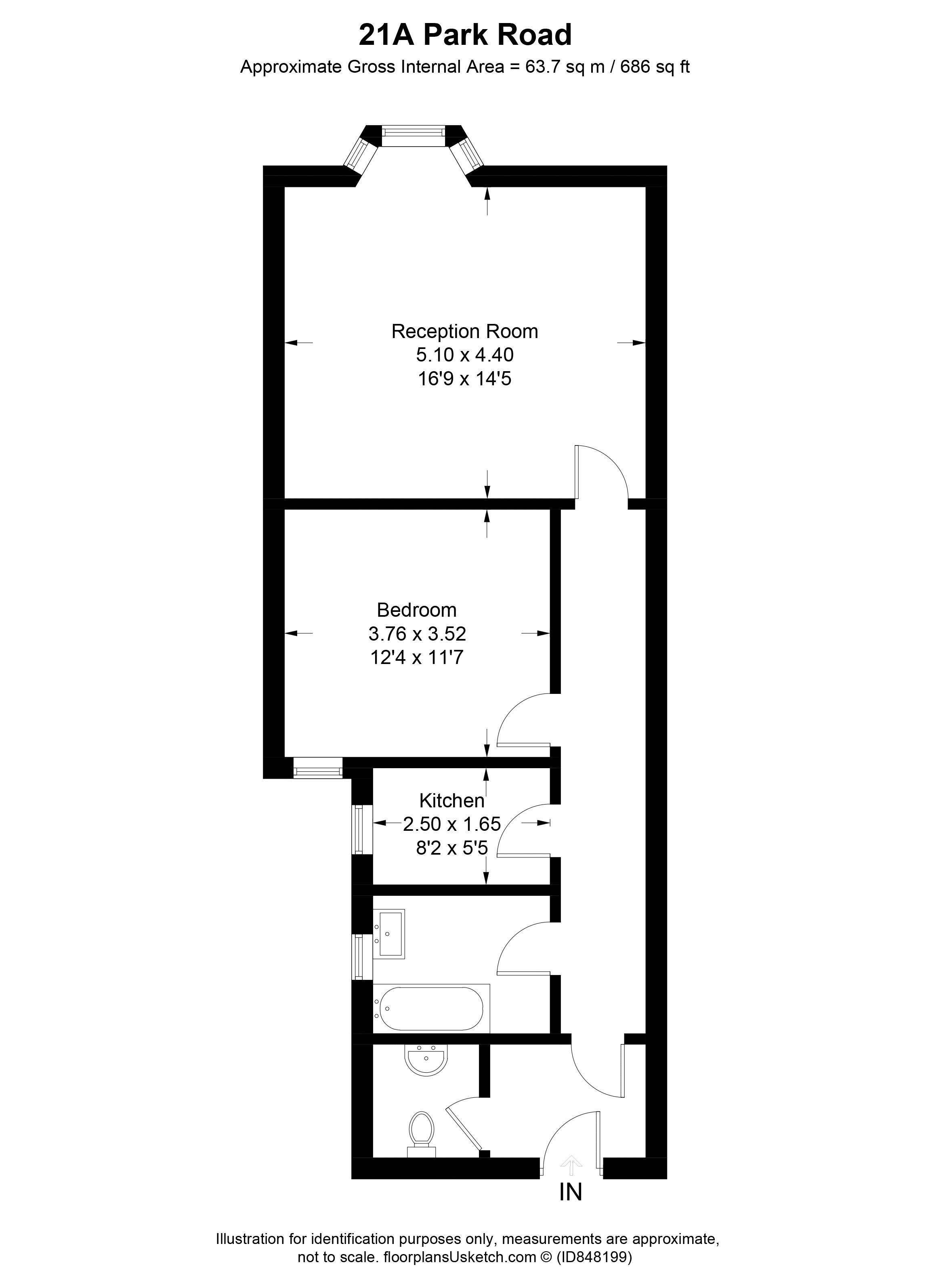 Access to the flat is provided through a service lane at the back of Park Road, through a gate into a private rear garden that is comprised of a decked area with a steps up to the door. The door leads into a small hallway, with a door leading to a WC with wash hand basin and a single glazed window to the side aspect.