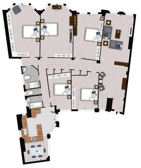 The apartment comprises Five bright and spacious bedrooms. You may also enjoy the fabulous views over Regent Park from the generous magnitude of the balcony. Bathrooms installed with a surrounding of mirrors and modern light fittings for a luxurious feel. Following on, the spacious hall ways provide room for reasonable sized furnishings and decor.