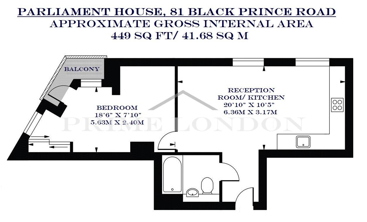 The 449 sq ft / 41.68 sq m apartment itself has a private balcony and unobstructed views looking south over London, meaning it gets lots of light all day long.