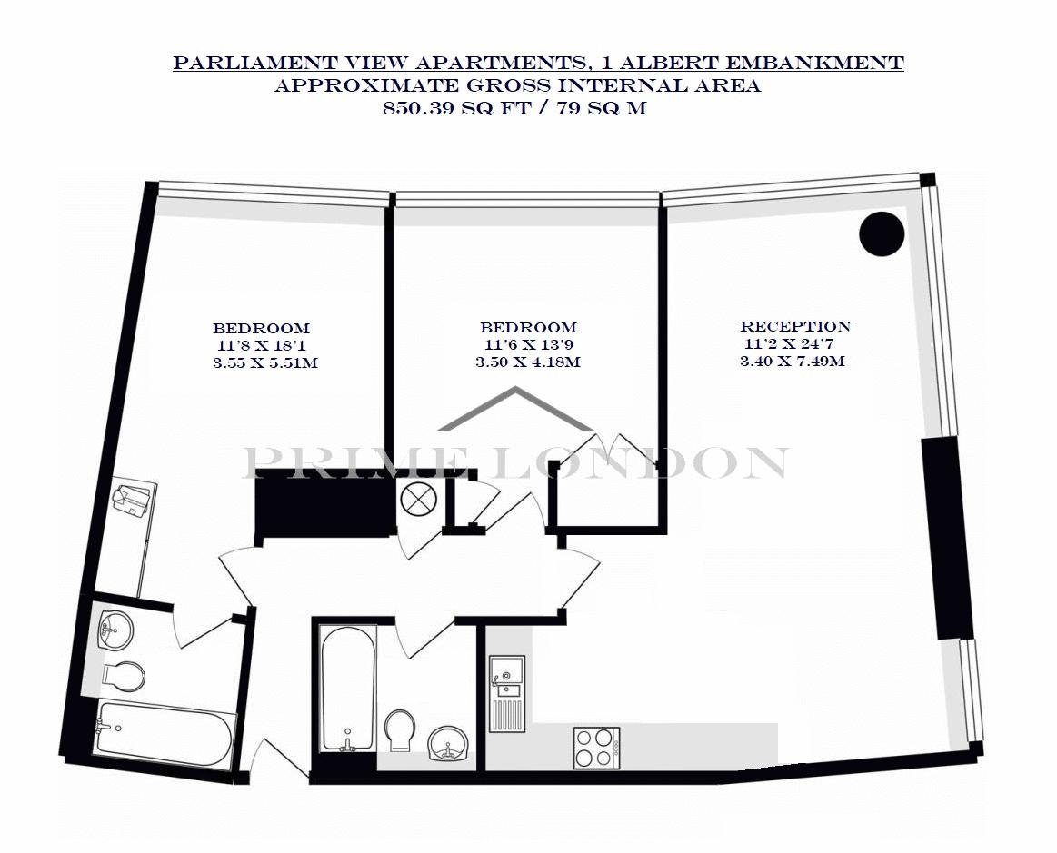 This excellently located and bright two bedroom two bathroom apartment, set within the sought after Parliament View Apartments and totalling 850 sq ft (79 sq m), is available to rent through Prime London.