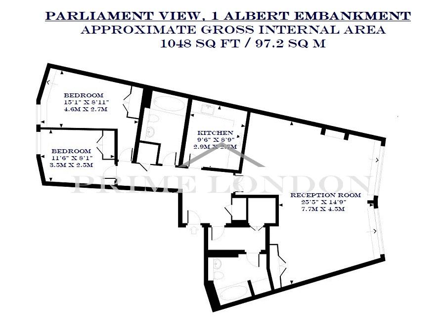 This exceptionally large two bedroom apartment (which used to be a three bedroom apartment but has been modified to create a uniquely large reception room - ideal when working from home) showcases the most iconic views over London - including views of the River Thames, Big Ben, and London Eye - and totalling 1,048 sq ft / 97.2 sq m, is available to rent through Prime London. Parking is also available by separate negotiation.