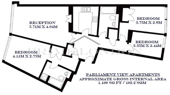 A spacious three bedroom apartment, with iconic views over London, secure parking, and internal space of some 1,100 sq ft, available for lease exclusively through Prime London.