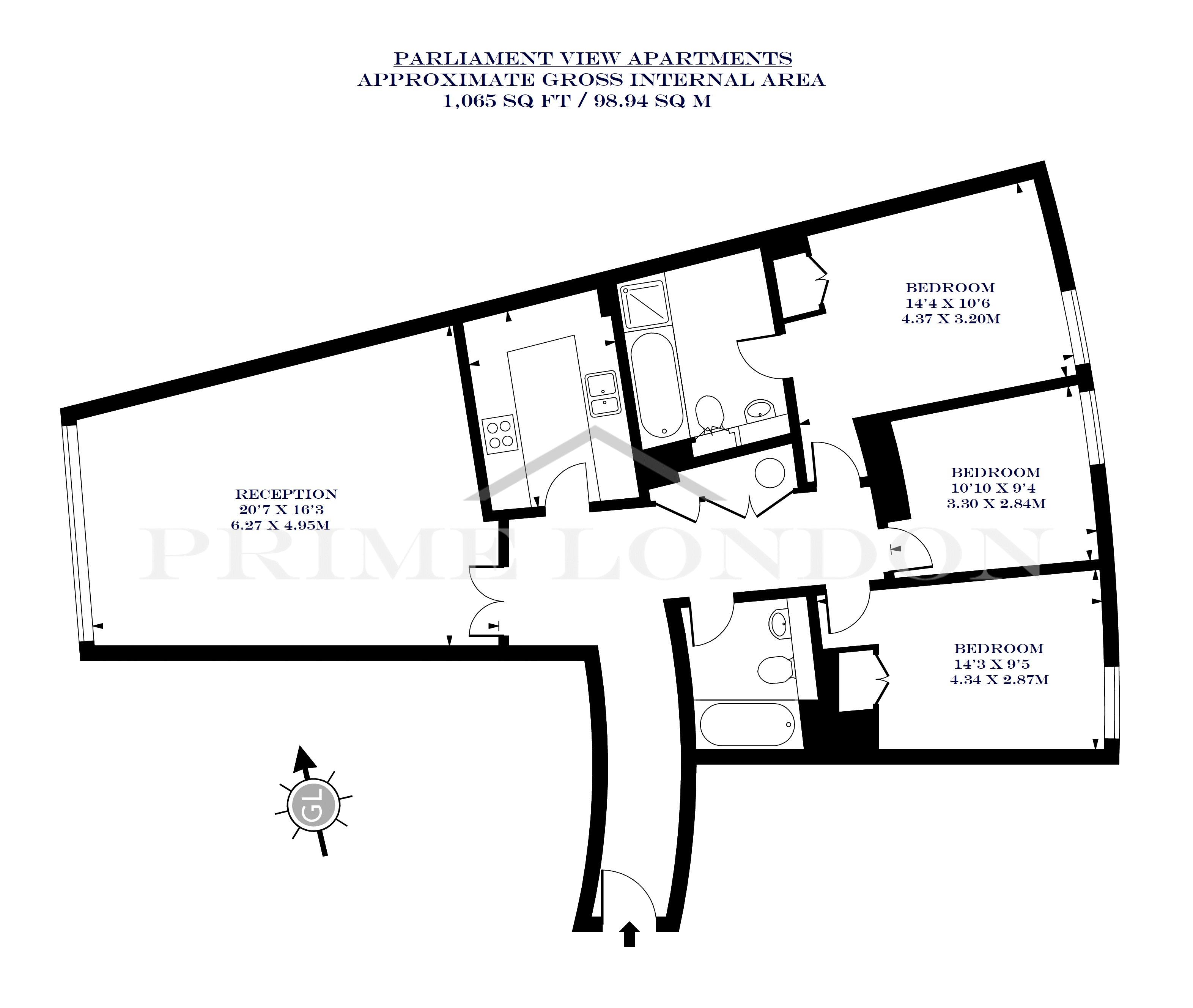 This well-kept three bedroom apartment, with the most iconic views of the River Thames and Houses of Parliament, totalling 1,065 sq ft / 98.94 sq m and with secure parking, is available to rent through Prime London.