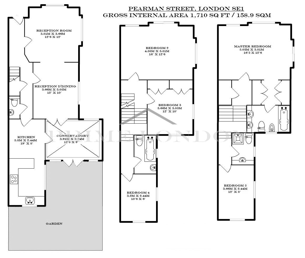 A rare five/six bedroom corner house of over 1,700 sq ft, with two/three entertaining rooms over three floors, also featuring a conservatory and private garden, in a quiet location close to Waterloo Station.