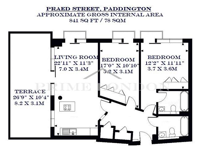 This exceptional fully furnished two bedroom apartment, with private terrace, three private balconies and an excellent living space of 841 sq ft / 78 sq m, is available to rent through Prime London.