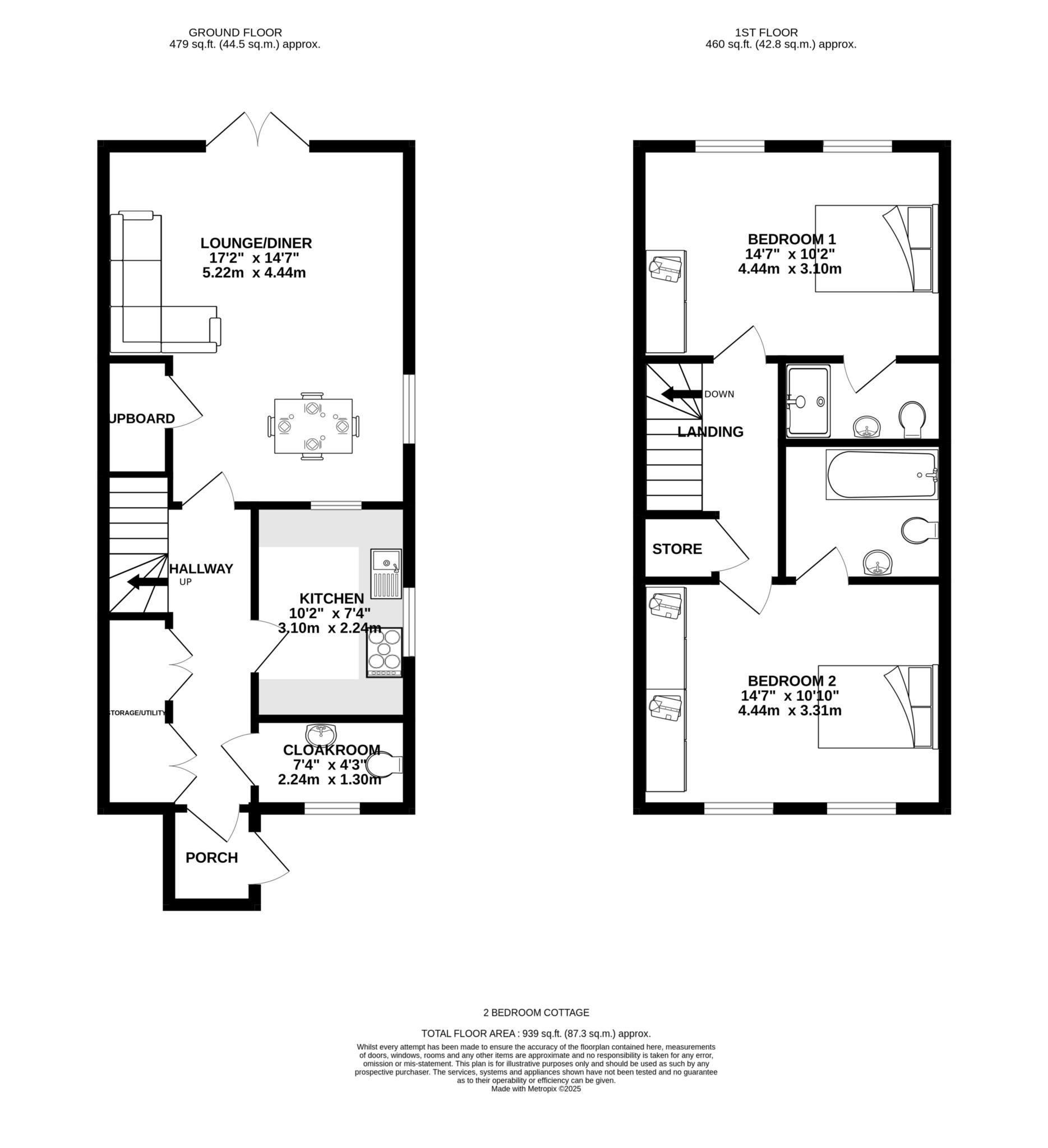 The separate kitchen is modern and fully-equipped with quality integrated appliances. The living room is spacious enough for a dining table, an ideal space for everyday living and entertaining alike. Upstairs you`ll find two ensuite double bedrooms with ample storage as well as a large loft space.
