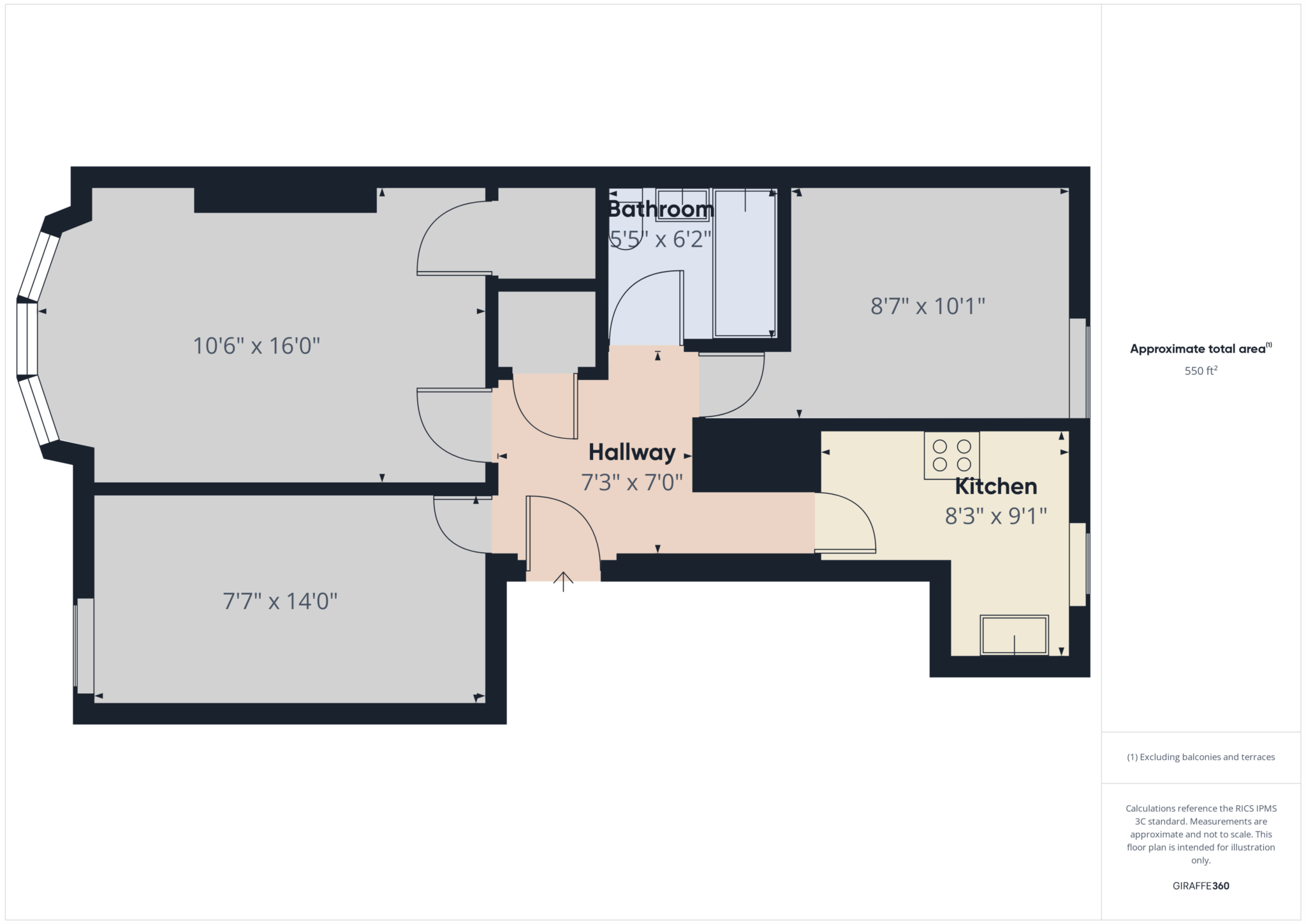 Kitchen 9`1" ? 8`3" 2.77m ? 2.51m