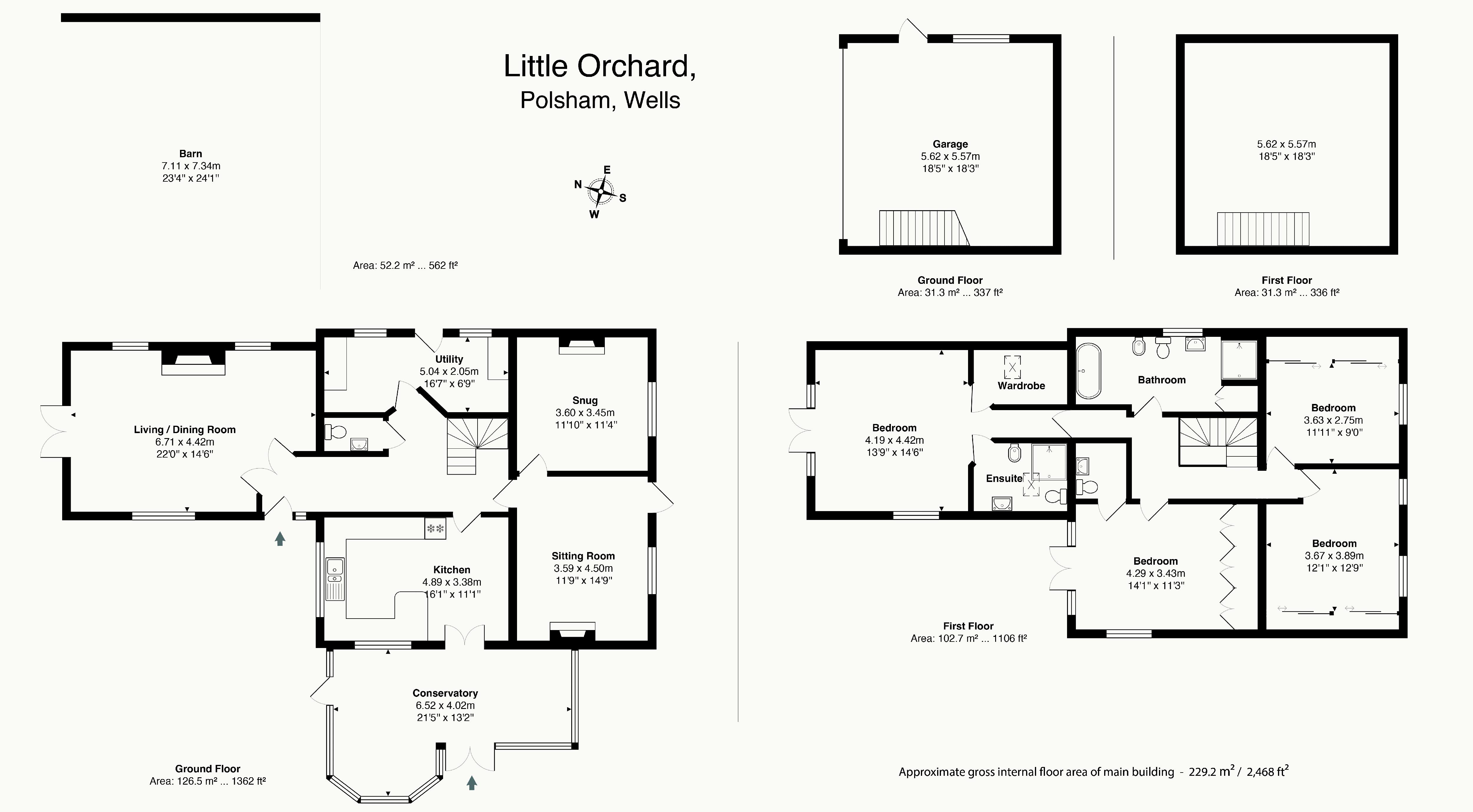 A delightful property on the outskirts of Wells with a very spacious house (about 2,500 sq.ft.) very useful outbuildings, gardens and an orchard paddock. In all over an acre.The house has generous accommodation including a hall, cloakroom, sitting room, living/dining room, snug, conservatory, kitchen and utility room. On the first floor are the main bedroom suite (large bedroom, shower room and dressing room.), a second bedroom with an en suite loo, two further bedrooms and the family bathroom. Close to the house is a double garage (with store above) and other outbuildings including a 25 ft barn, a large workshop and store.The property has attractive lawned gardens, with a circular drive, together with a delightful orchard paddock and field shelter.