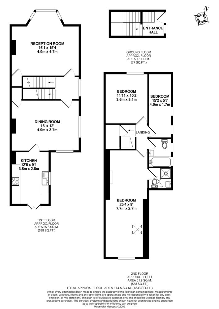 The property has a porch and private entrance on the ground floor with stairs leading up to the first floor landing that opens onto the generously proportioned reception rooms. The sitting room boasts ample natural light with a large bay window and a beautiful fireplace. Adjacent to this, the dining room is a wonderful space that also features a period fireplace and leads to the modern kitchen which is well-equipped with contemporary fittings and fixtures, providing plenty of storage and workspace for culinary enthusiasts. Large French doors open onto the delightful south facing roof terrace. There is also a secluded and well-established rear garden below, offering a peaceful retreat for outdoor dining, gardening or simply enjoying the fresh air. There are three well-sized bedrooms located on the second floor. The principal bedroom is exceptionally spacious, providing a tranquil sanctuary complete with an ensuite shower room. The additional two bedrooms are equally inviting, offering comfort and flexibility for family members or guests. An exquisite bathroom serves these bedrooms, featuring marble tiling, modern amenities and stylish decor. The property also benefits from off-street parking for one vehicle, a coveted feature in this desirable area.