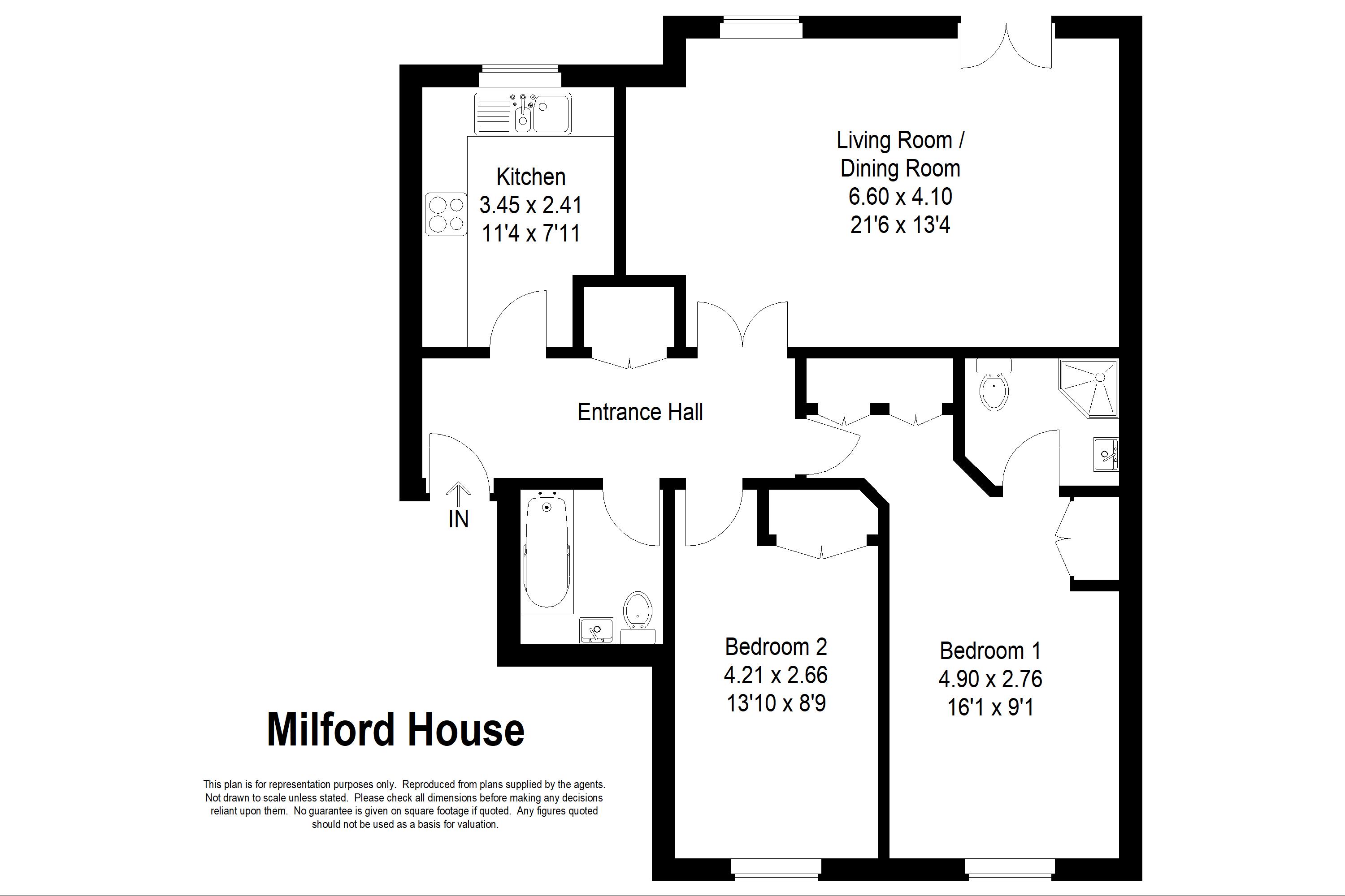 From Godalming town centre, proceed out of town via Ockford Road (A3100) towards Milford. On reaching Milford, continue past The Refectory on the left and take the next turning left. Visitor parking spaces for Milford House will be seen on the left hand side. From here, walk through the entrance gate into the courtyard of the Milford House town houses and follow the driveway to the rear of the building. The communal entrance will be seen on the left hand side.