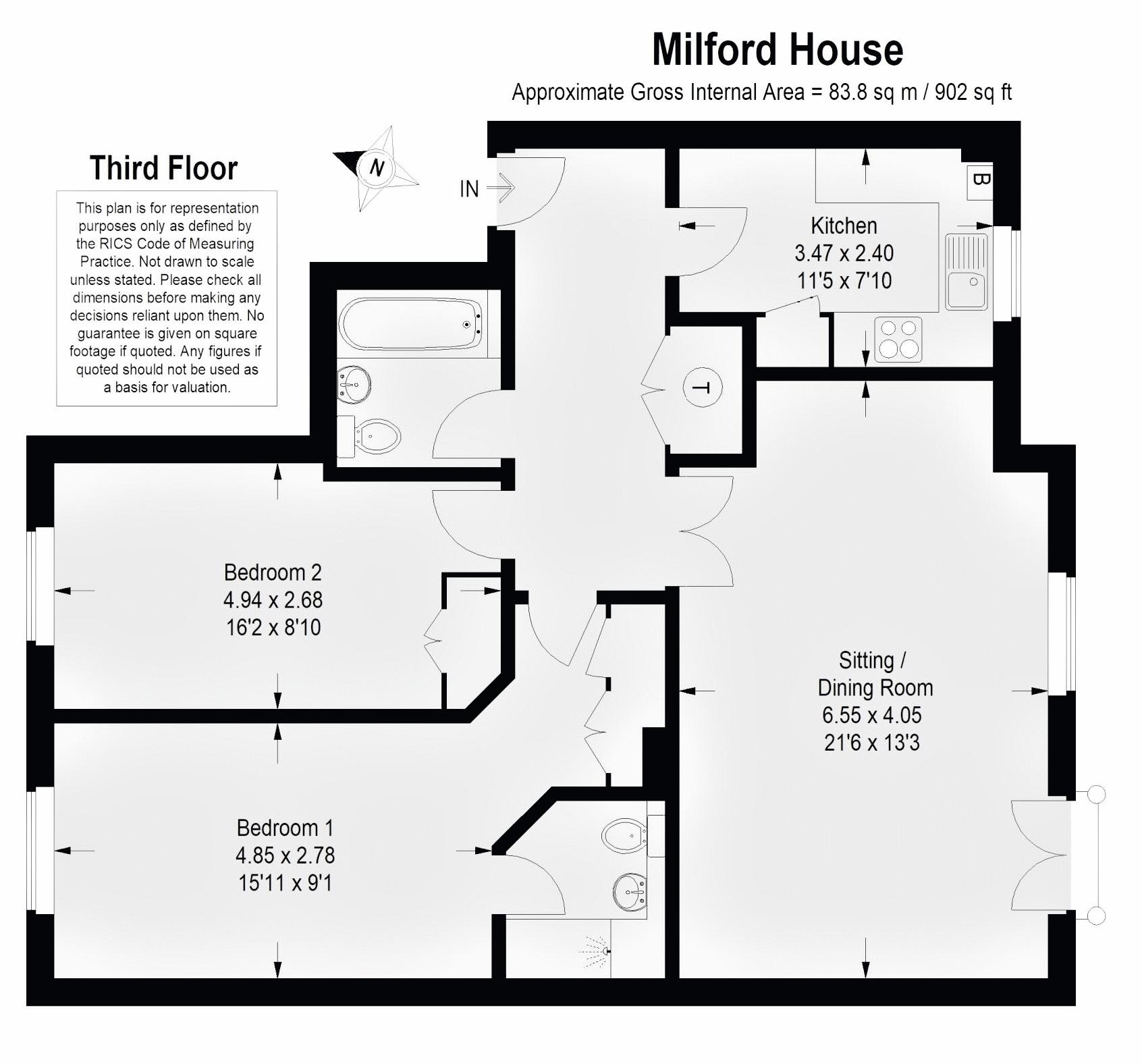 Very spacious top floor apartment with attractive outlook over communal gardens and adjoining countryside, offering vacant possession.