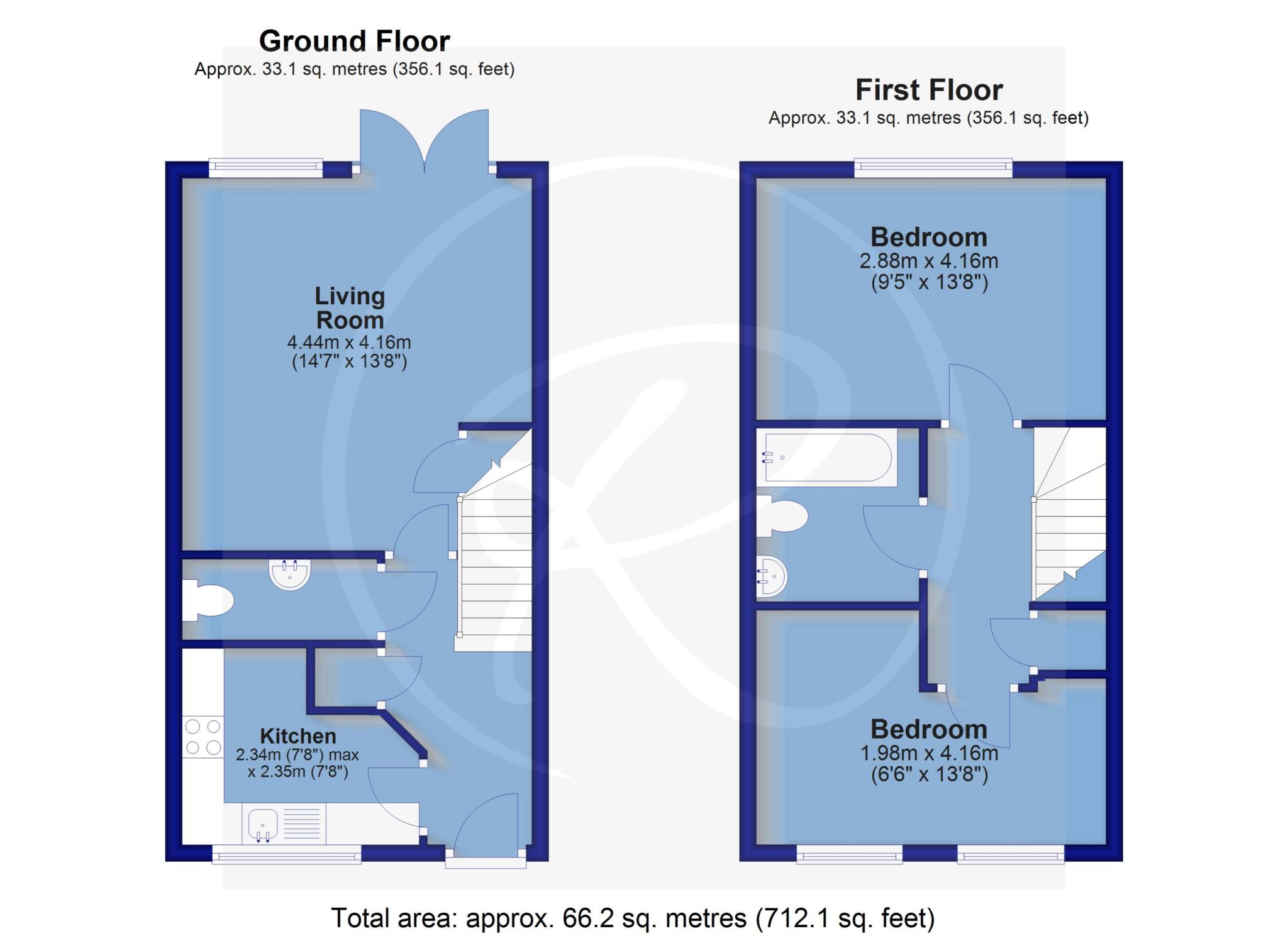 Upstairs, two generously proportioned double bedrooms overlook the front and rear respectively, each offering plenty of space for wardrobes and additional furnishings. The family bathroom is fitted with a crisp white suite, including a bath with shower over, combining comfort and practicality.