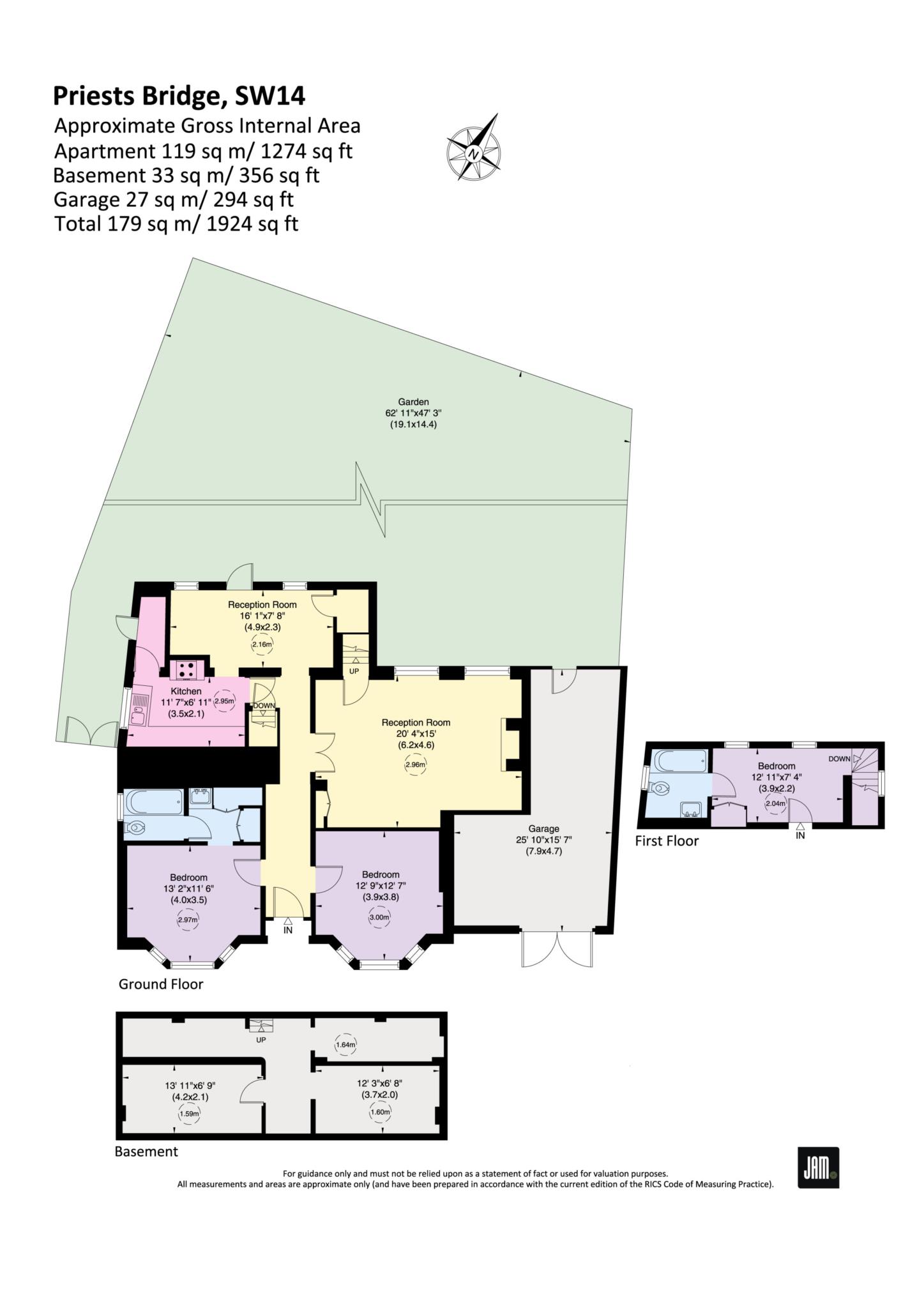 A two/three bedroom split level apartment spread over the entire ground floor of a handsome Victorian double fronted building, with the benefit of a 62` garden, basement storage, garage and off street parking.