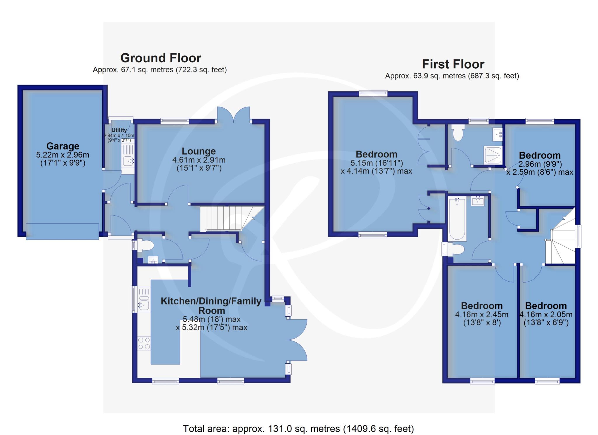 A separate utility room adds convenience and practicality. Upstairs there are four well-proportioned bedrooms, including master with an en-suite shower room, along with the family bathroom.