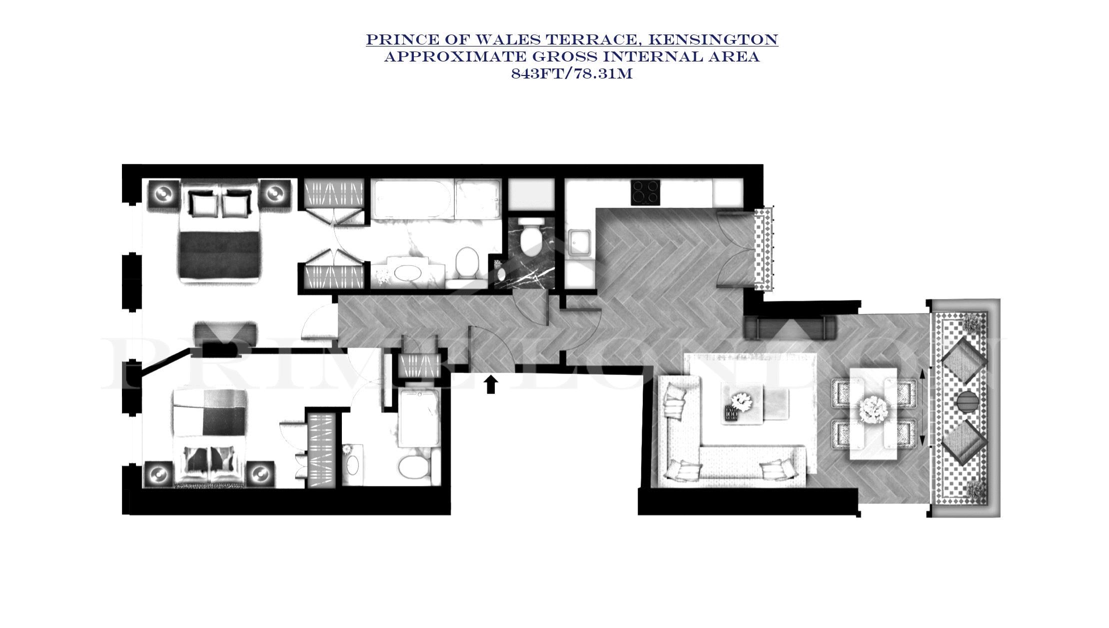 Prince of Wales Terrace comprises a collection of elegantly refurbished apartments housed in a stucco-fronted building dating back to the early 1860s. These residences exude luxury, featuring beautiful marble floors that lead to a grand entrance, which in turn leads to a stunning staircase. Each home boasts a private terrace or balcony adorned with Victorian chequerboard tiling.