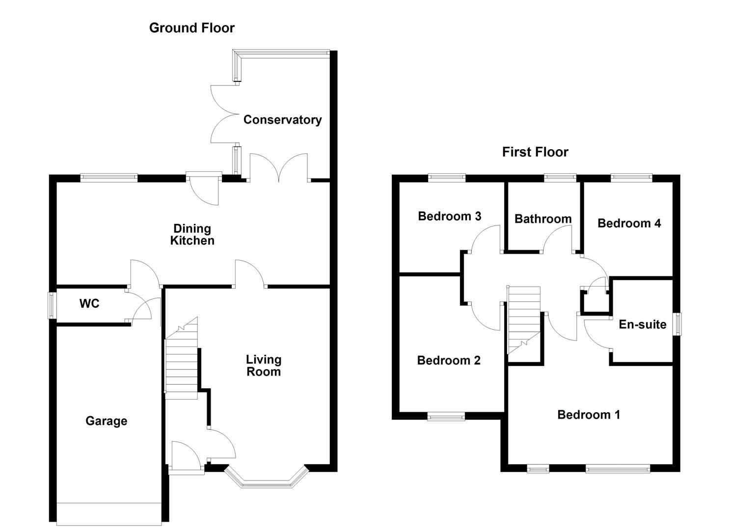A welcoming entrance hall leads into a spacious living room with a splay bay window to the front and an attractive feature fireplace. Spanning the full width of the rear, the open plan dining kitchen is fitted with a comprehensive range of modern units and integrated cooking appliances, with double doors leading to a conservatory that enjoys lovely views over the rear garden. An inner hallway provides access to a guest w.c. and internal entry to the integral garage. To the first floor, the principal bedroom benefits from an en suite shower room, while three further bedrooms are served by a modern family bathroom fitted with a contemporary white and chrome suite. Externally, the property offers side by side driveway parking leading to the integral garage, and a neat lawned front garden. To the rear is a larger, south facing garden featuring a spacious patio seating area, well kept lawn, and additional seating space, perfect for outdoor entertaining.