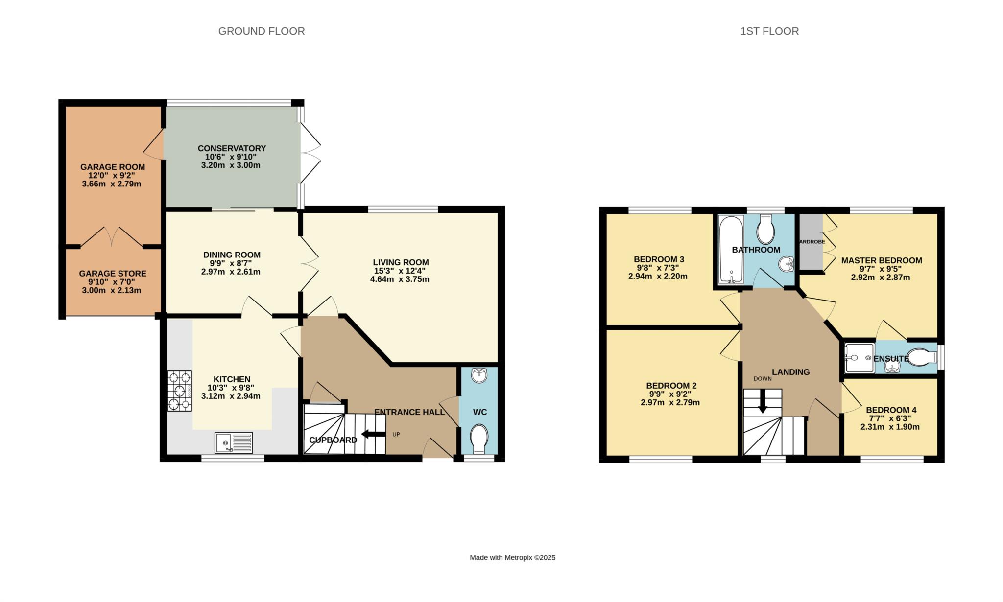 To the first floor there are four bedrooms, the master has en-suite and fitted wardrobes. Externally, the rear garden has an area of artificial grass and a good sized Patio area, whilst to the side there is garage and driveway. The rear part of the garage has been converted and can be used as an office/family room.