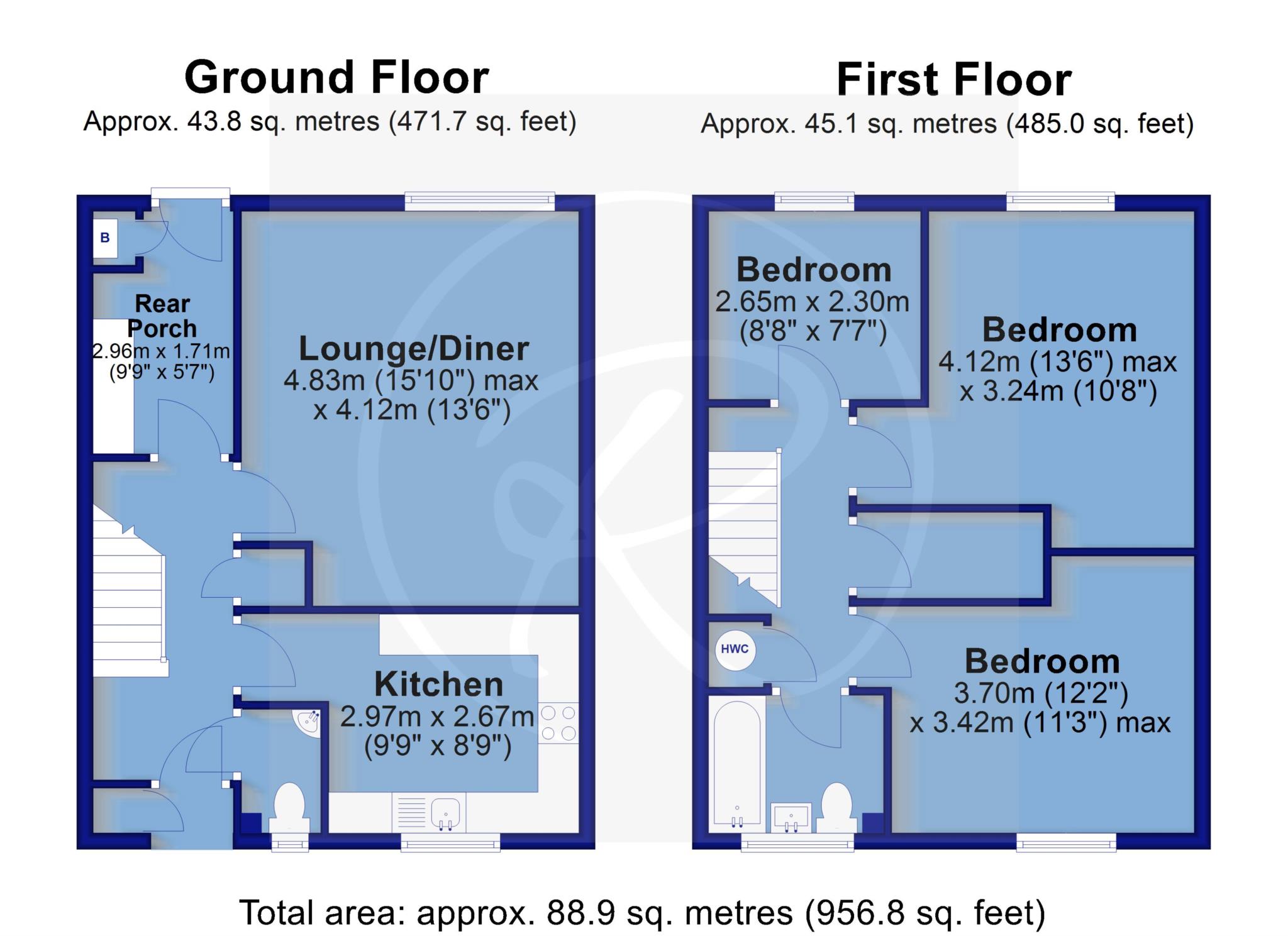 Stairs lead to the first floor landing and off to each of the 3 bedrooms, each of a good size with 2 being doubles. The bathroom comprises a white suite together with electric shower over the bath.